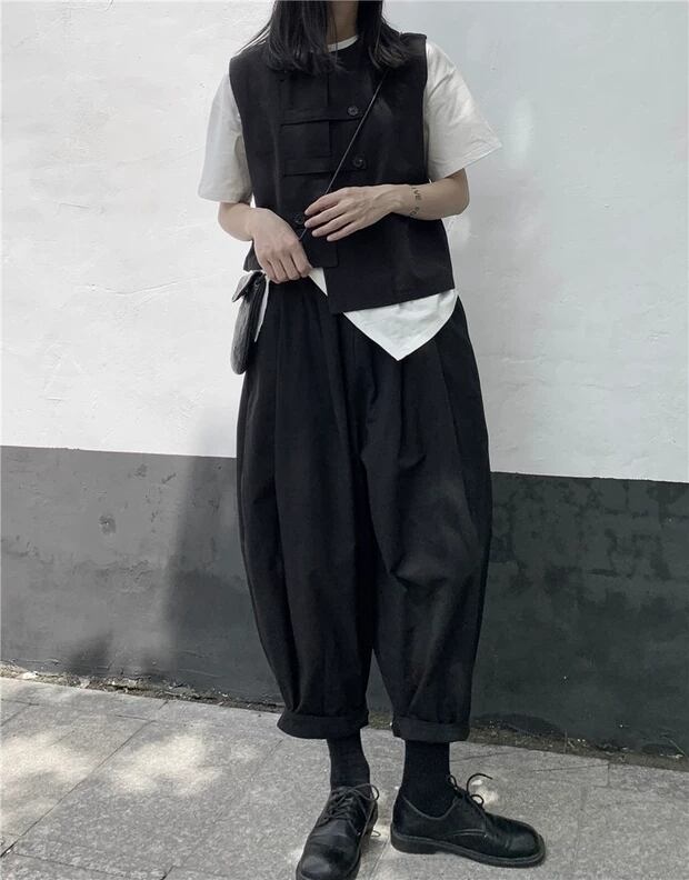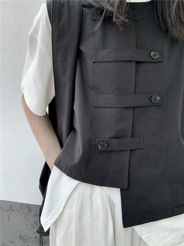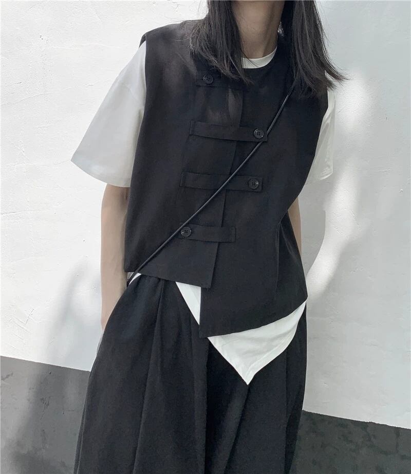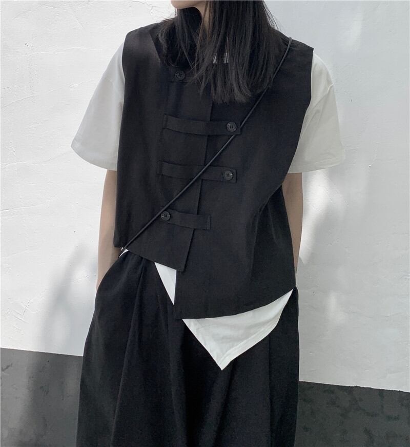BKANKANDWHITEダークニッチアシンメトリーデザインベストレディースシンラウンドネックコットンベスト ホワイト Oネック BWTB55120379211