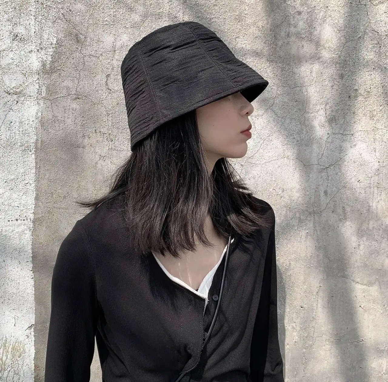 BLANKANDWHITEダークポットハットレディースオールマッチフェイススモールサンハットプリーツリンクルバケットハット春夏 帽子 スプリング 春物 サマー 夏物 BWTB67467037927