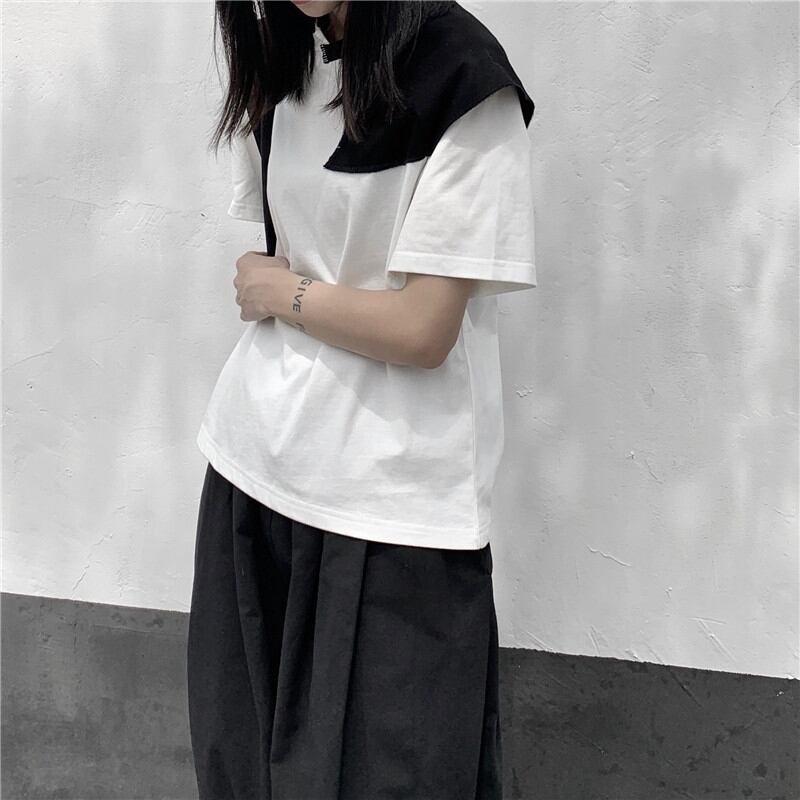 BLANKANDWHITEダークニッチデザイン半袖TシャツレディースステッチハーフスリーブトップTシャツ夏 ホワイト サマー 夏物 BWTB11669820730