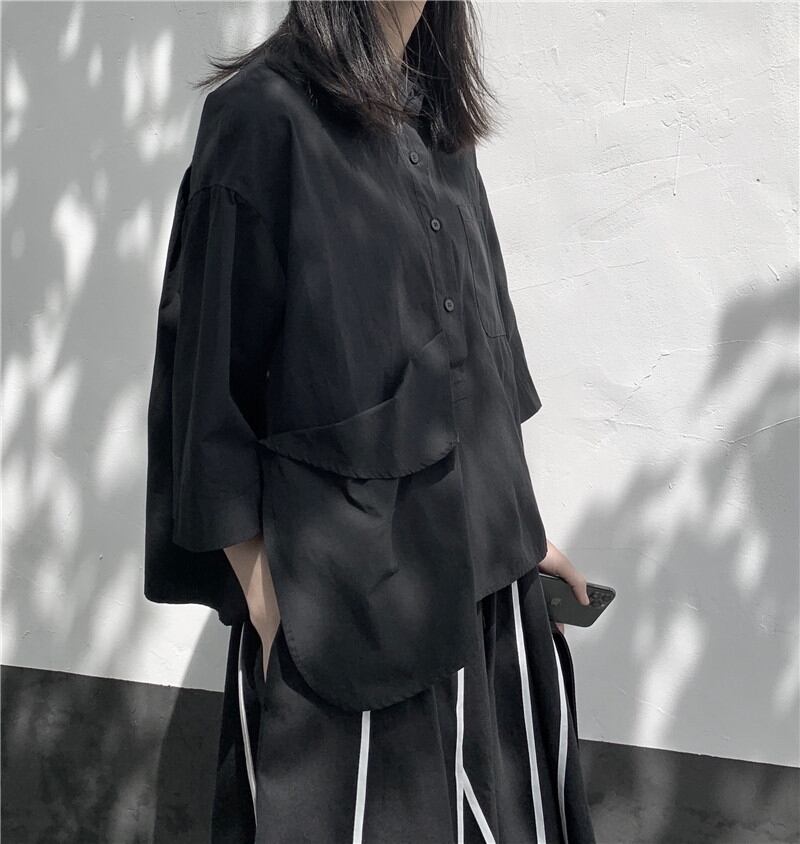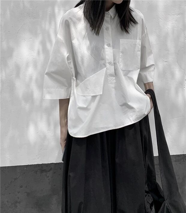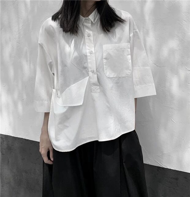 BLANKANDWHITEダークデザインの不規則な半袖シャツレディースコットンルーズ半袖トップ ホワイト BWTB26818854340