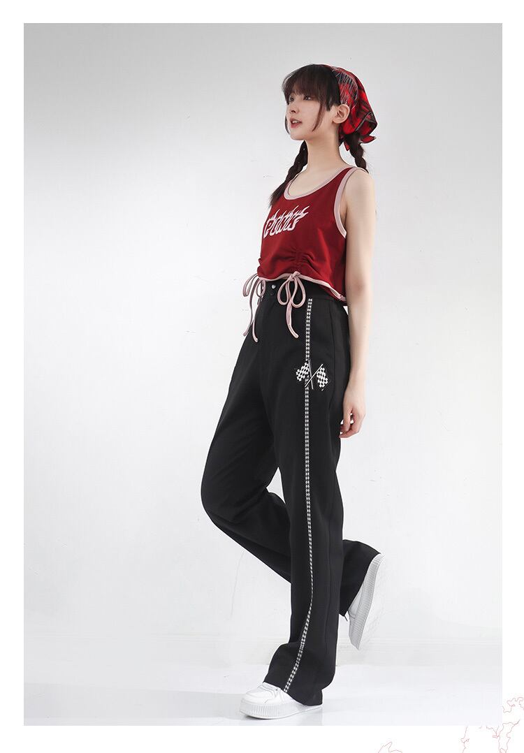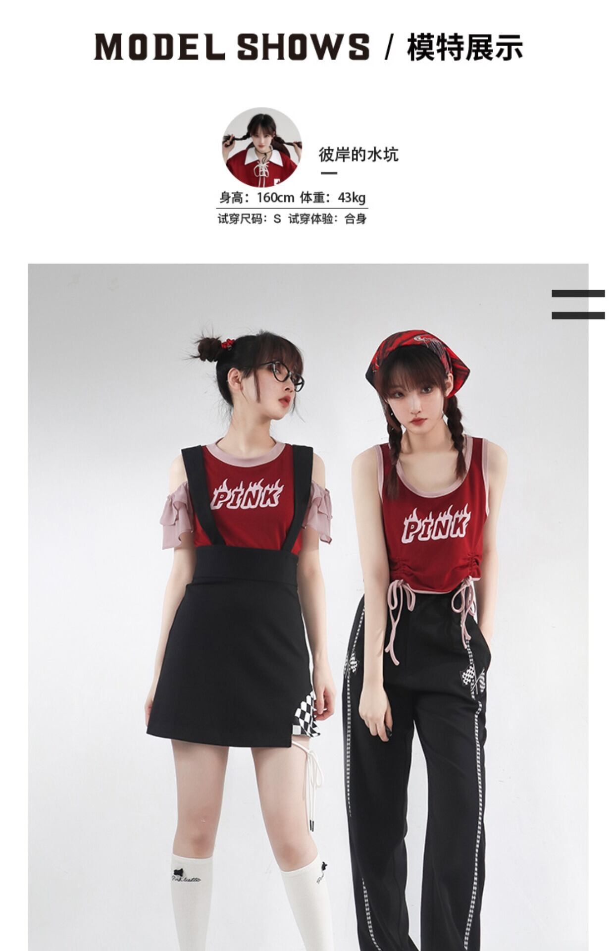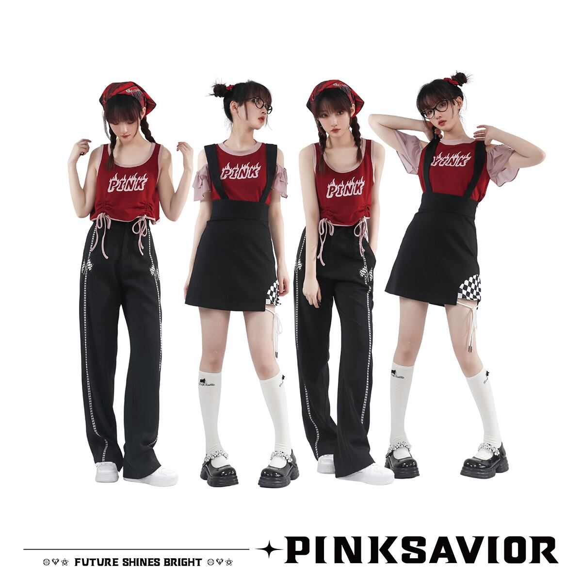 pinksaviorレッドピンクステッチベストドレープフラッグアメリカンスタイルステッチサマーパンツサスペンダースカート 夏物 PSTB4922627598