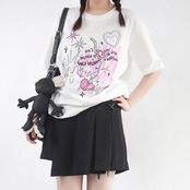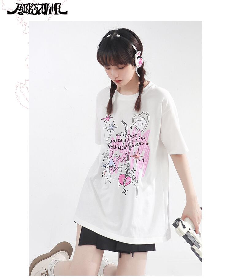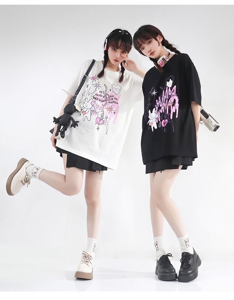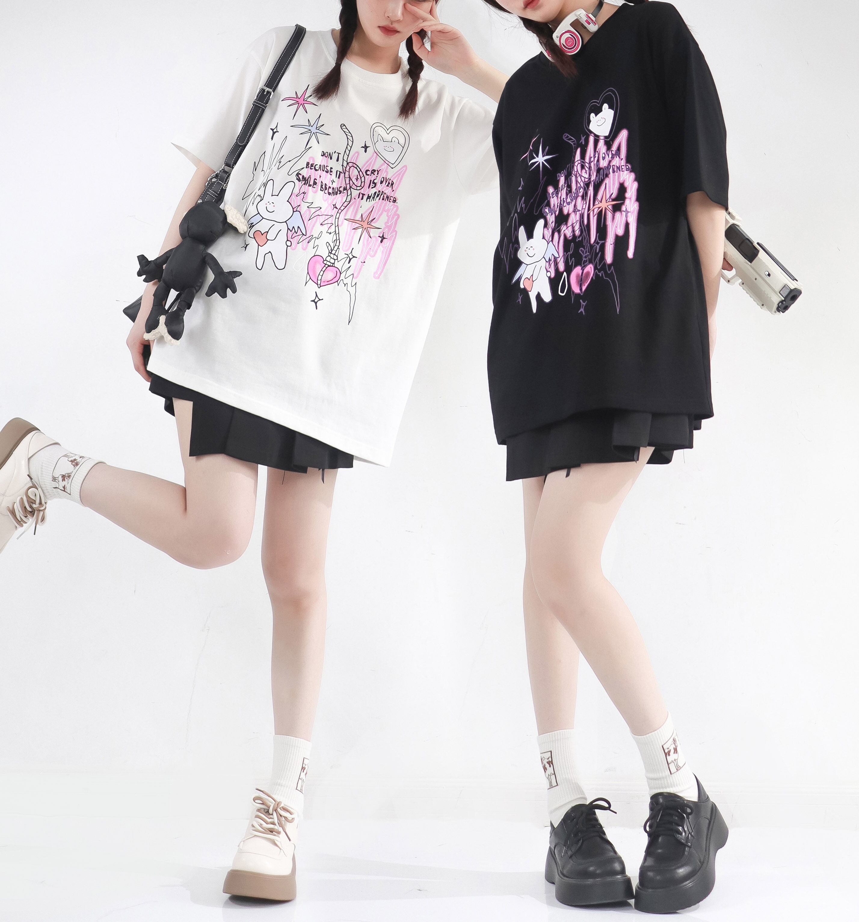 pinksavior夏の夢うさぎ肌にやさしい綿の長短カップルドレス半袖Tシャツ女性の夏の友達のドレス ショート ロング コットン サマー 夏物 PSTB44733726752