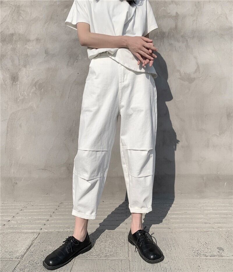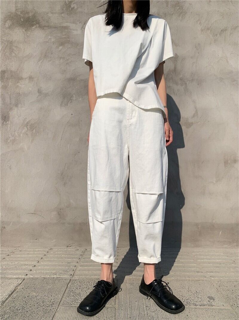 BLANKANDWHITEダークニッチデザインカジュアルパンツレディースピンチプリーツルーズ9点ストレートレッグパンツメンズ BWTB21666098018