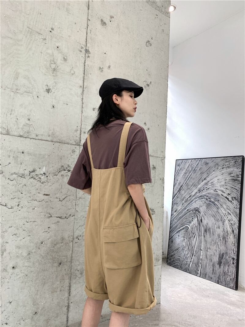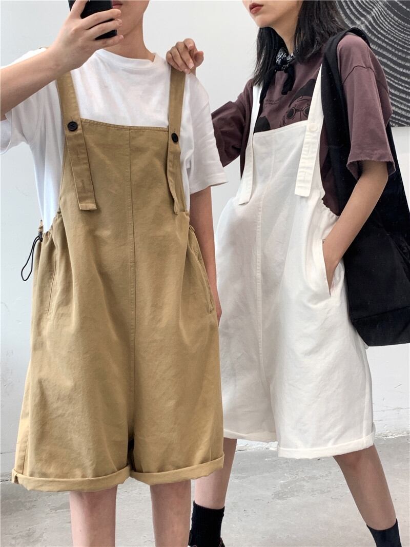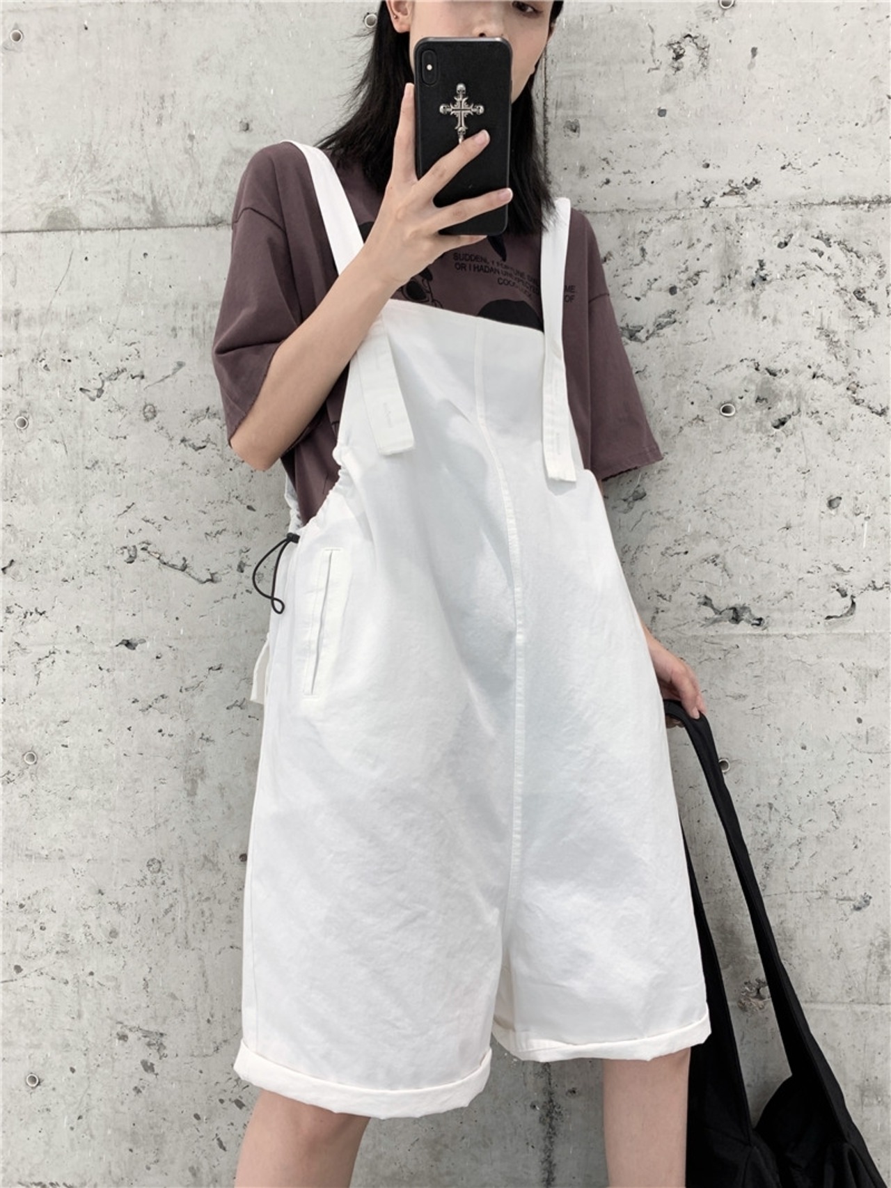 BLANKANDWHITEダークカップルのオーバーオールコットンルーズラージサイズオーバーオールショーツ5点パンツ女性 ホワイト 大きめサイズ ブルマー BWTB27242133990