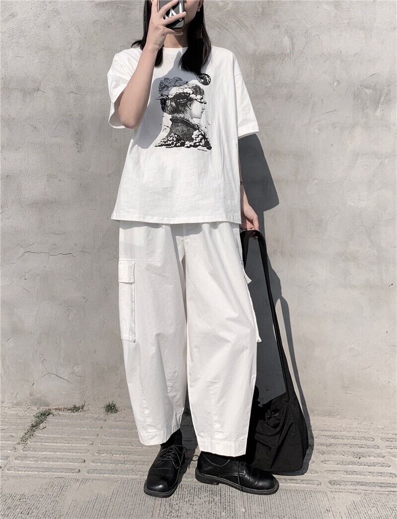 BLANKANDWHITEダークデザインプリント半袖TシャツレディースルーズオールマッチTシャツサマーニュースタイル ホワイト 夏物 BWTB48163430613
