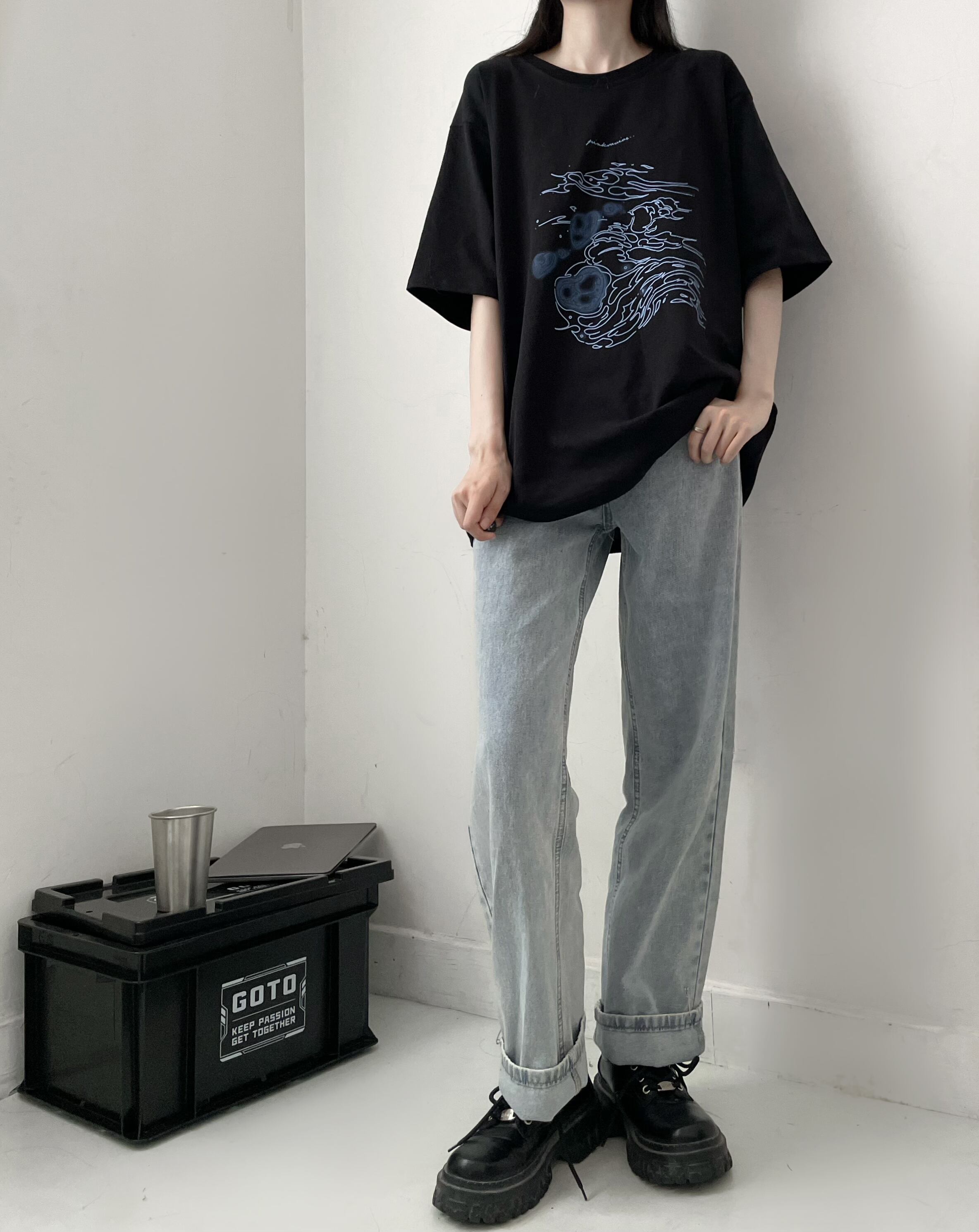 pinksaviorレモンシー2022夏新作半袖Tシャツレディースミドル丈ルースコットントップス サマー 夏物 PSTB81443354211