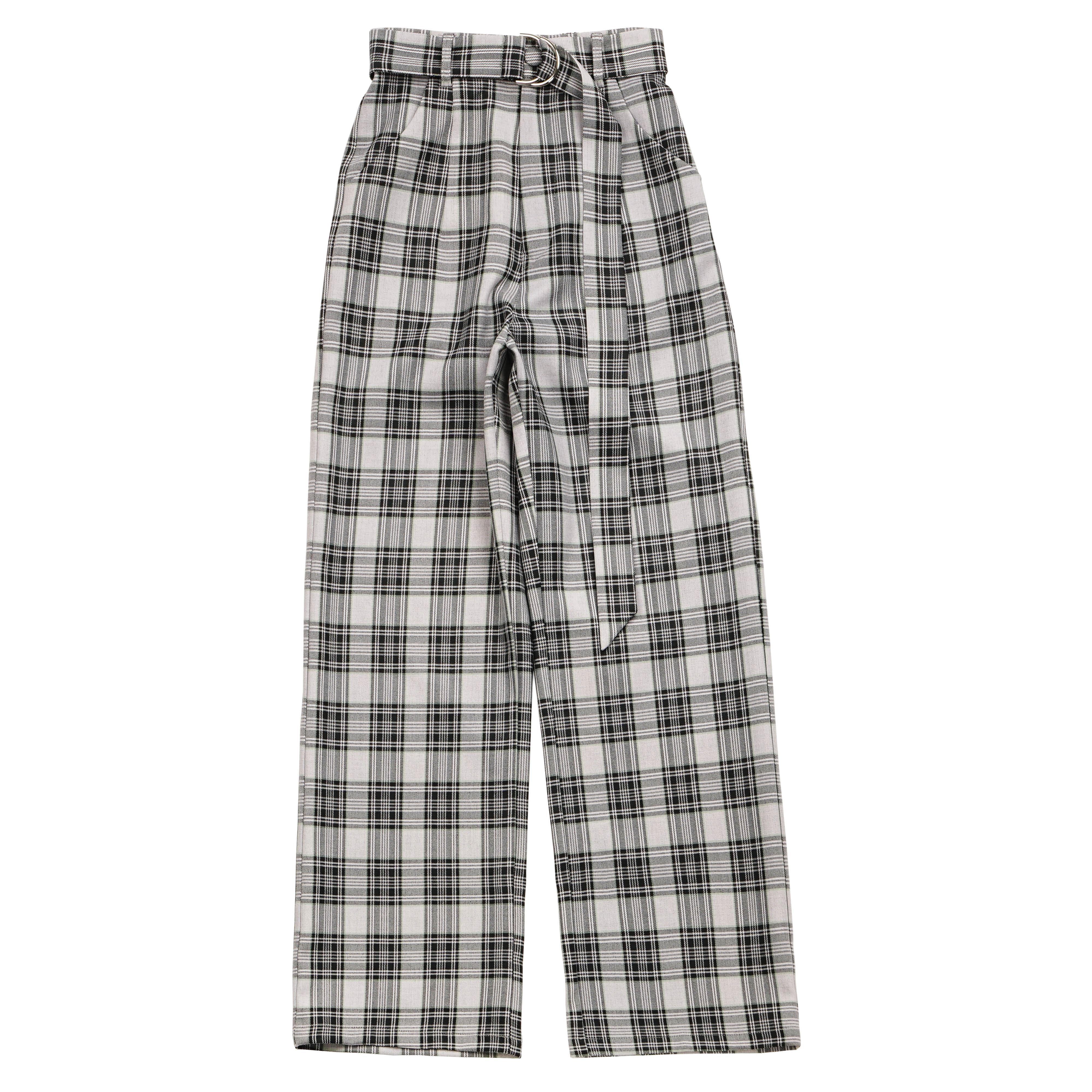 pinksaviorウェアラブル黒と白の格子ベルトウエストサマーカジュアルドレープワイドレッグパンツ ホワイト ブラック 夏物 ハーネス PSTB84007411807
