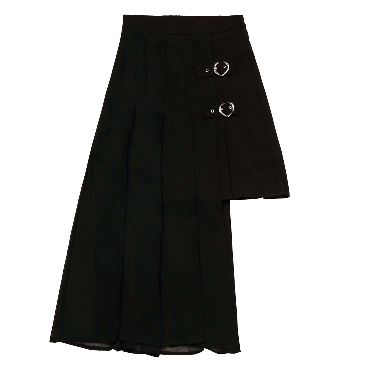 色:黒のトップステッチ半袖,ラブボタンイレギュラースカート