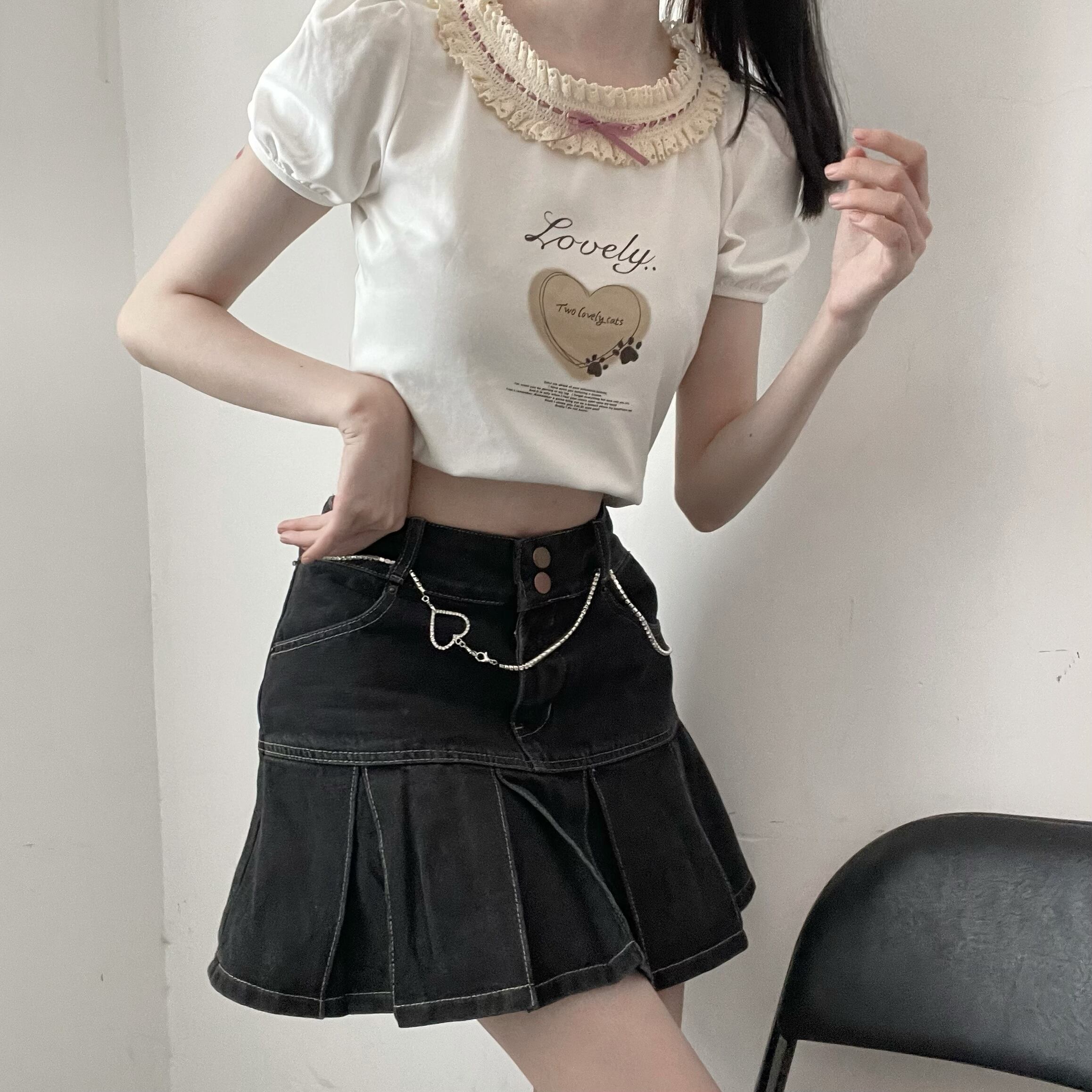 pinksavior3色白いレースの装飾夏の恋人黒と白の灰色の弾性フロ??ントショルダー半袖スポット ショート ホワイト ブラック ハーフスリーブ エラスティック 伸縮 大人ガーリー スウィート キュート カジュアル サマー 夏物 PSTB17115235292