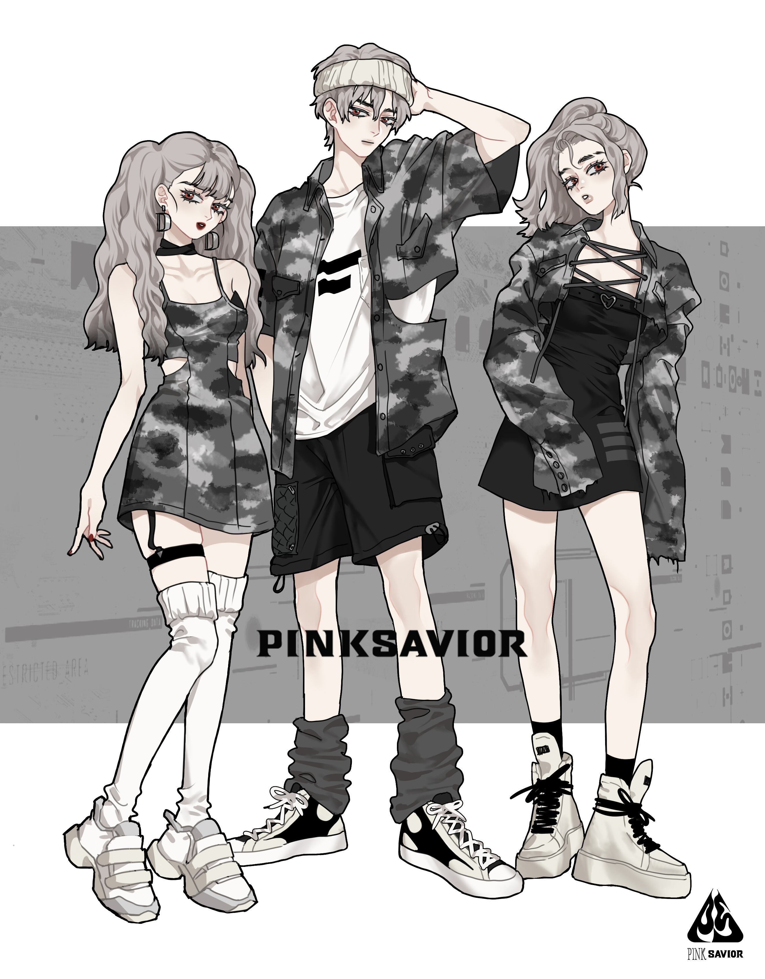 ピンクセイバー【海の市場】カモフラージュ3人組デザイン不規則ステッチサマーサスペンダースカートパンツシャツ 夏物 PSTB73137471151