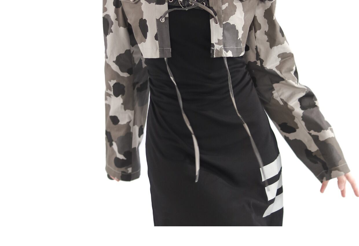 色:カモフラージュスリップドレス,3M反射ピュアブラックサスペンダースカート,ホワイトポケット半袖,不規則な大ポケット迷彩シャツ,メッシュパンツ,スーパーショートカモフラージュ日焼け止めシャツ
