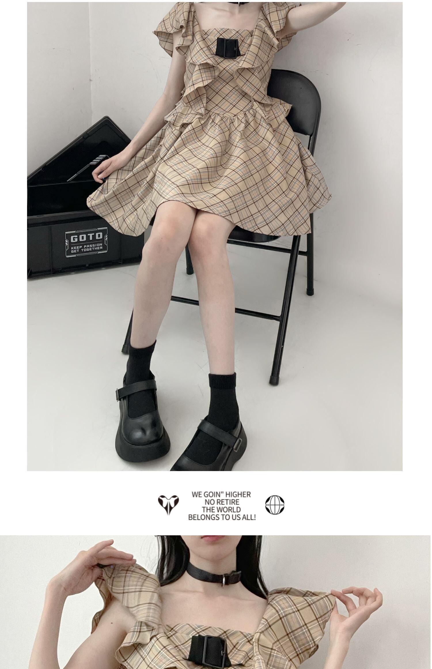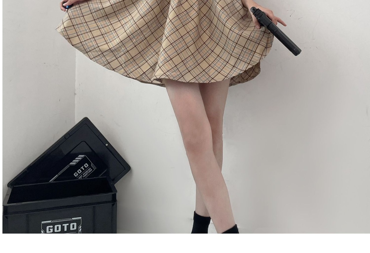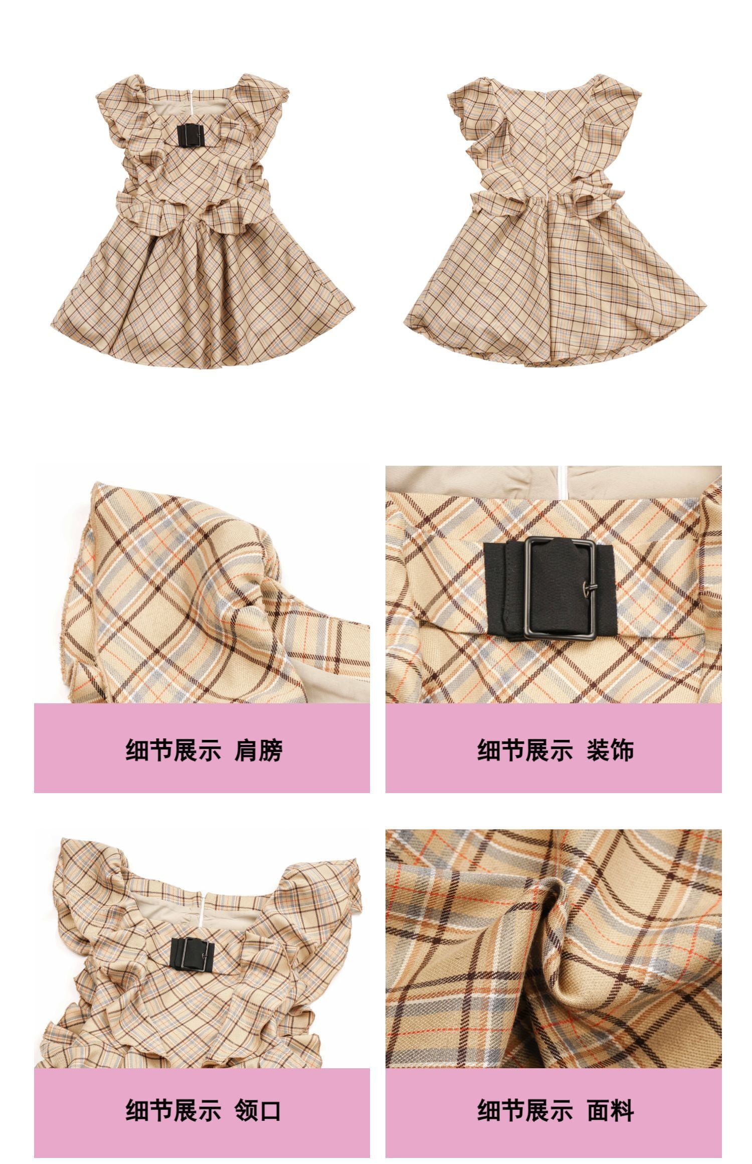 色:ホワイトミルクティーの子犬のTシャツ,チェックスカート,小さなフライングスリーブドレス,真っ黒なスカート