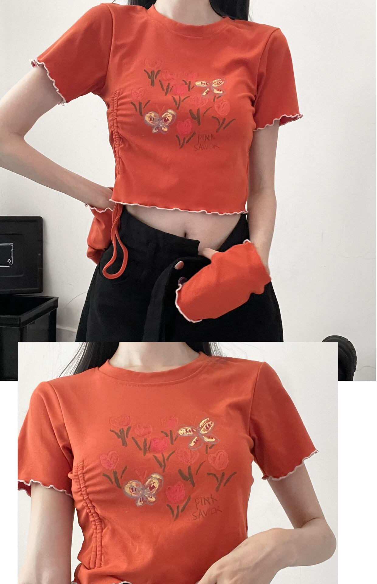 ピンクセイバーサマーアメリカンレトロプリントスリムショルダー半袖コレクション ショート ハーフスリーブ 夏物 PSTB37544107731