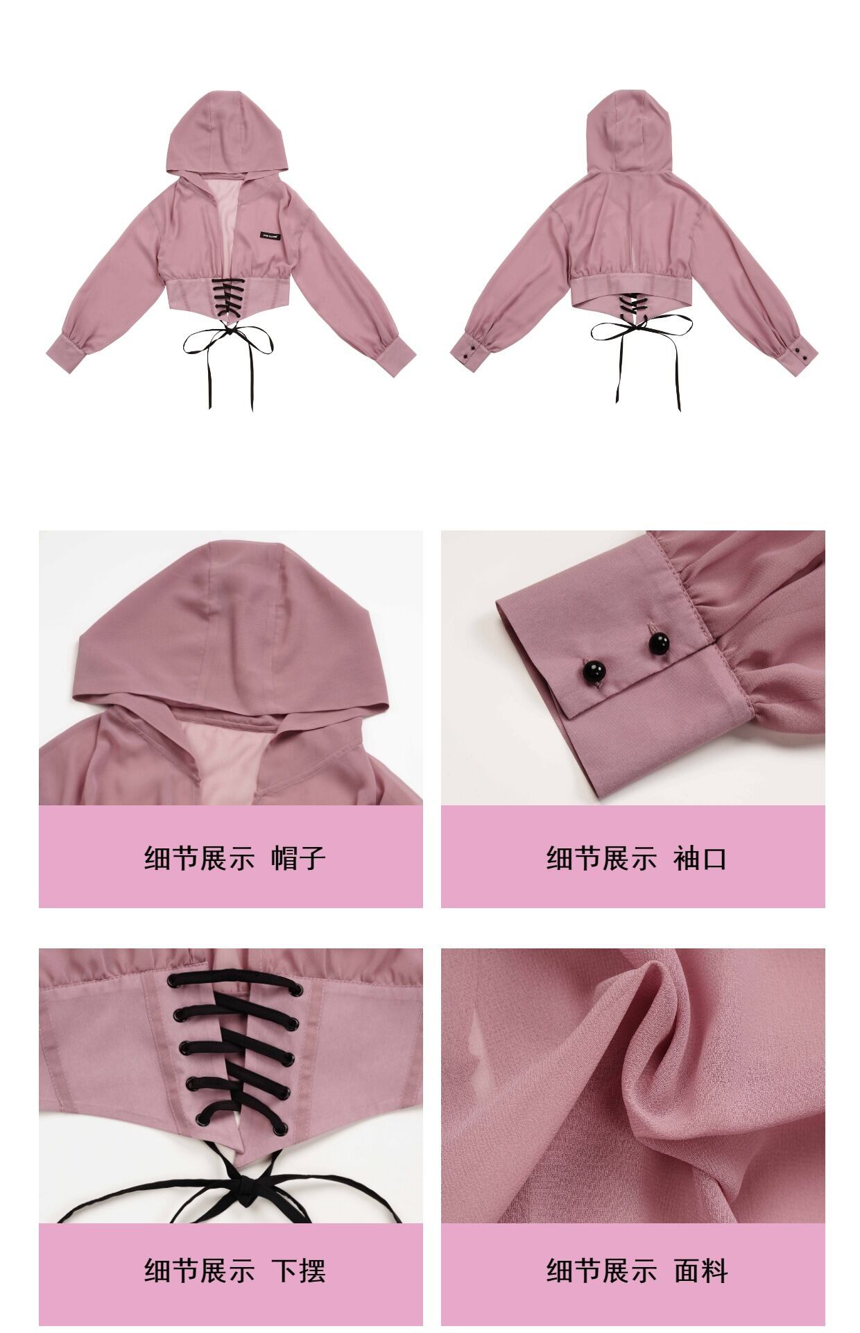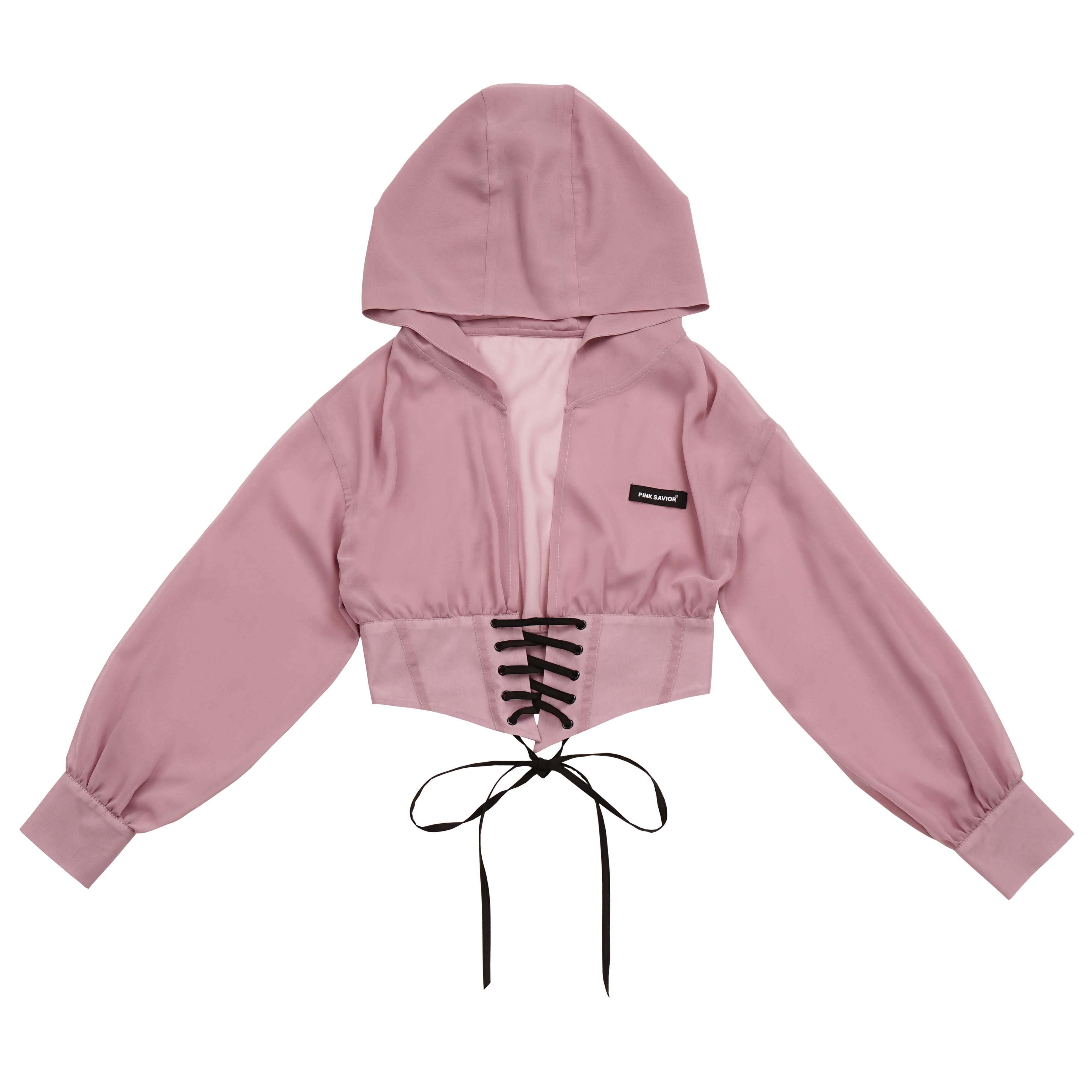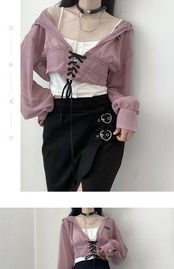 色:ピンクタイサントップ,ホワイトサスペンダー,黒のロングスカート