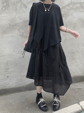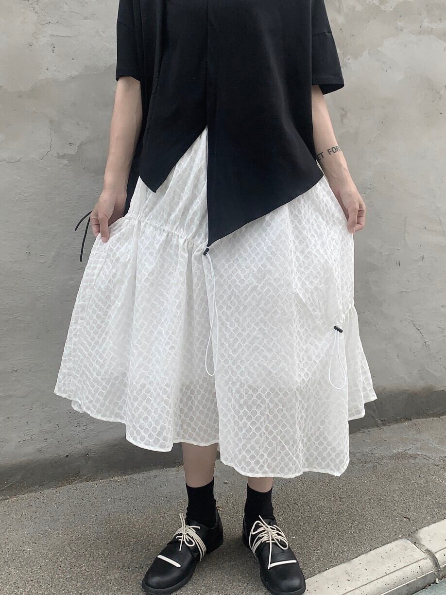 ダーク イレギュラー ドローストリング スカート レディース オールマッチ スリム 小さめ ミディアム丈 無地 Aラインスカート ソリッドカラー BWTB98129824662