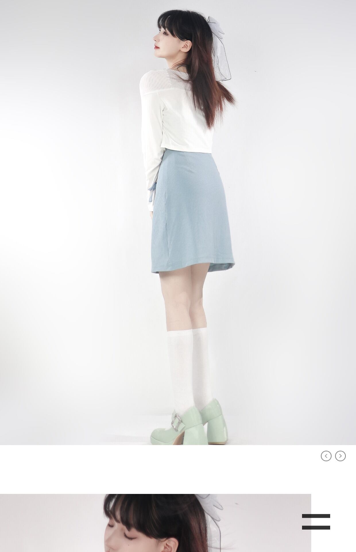 pinksavior [Xiao Xian'e] Shuiyu ブルー スリング ニット ウエスト スカート + ボウ ミルク カーディガン ピンク レッド リボン PSTB26494025003