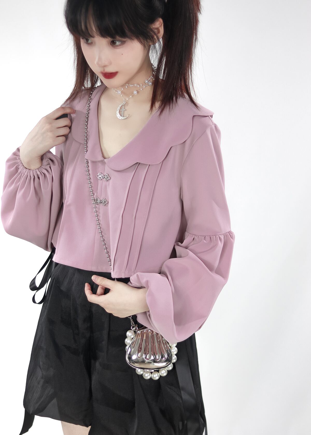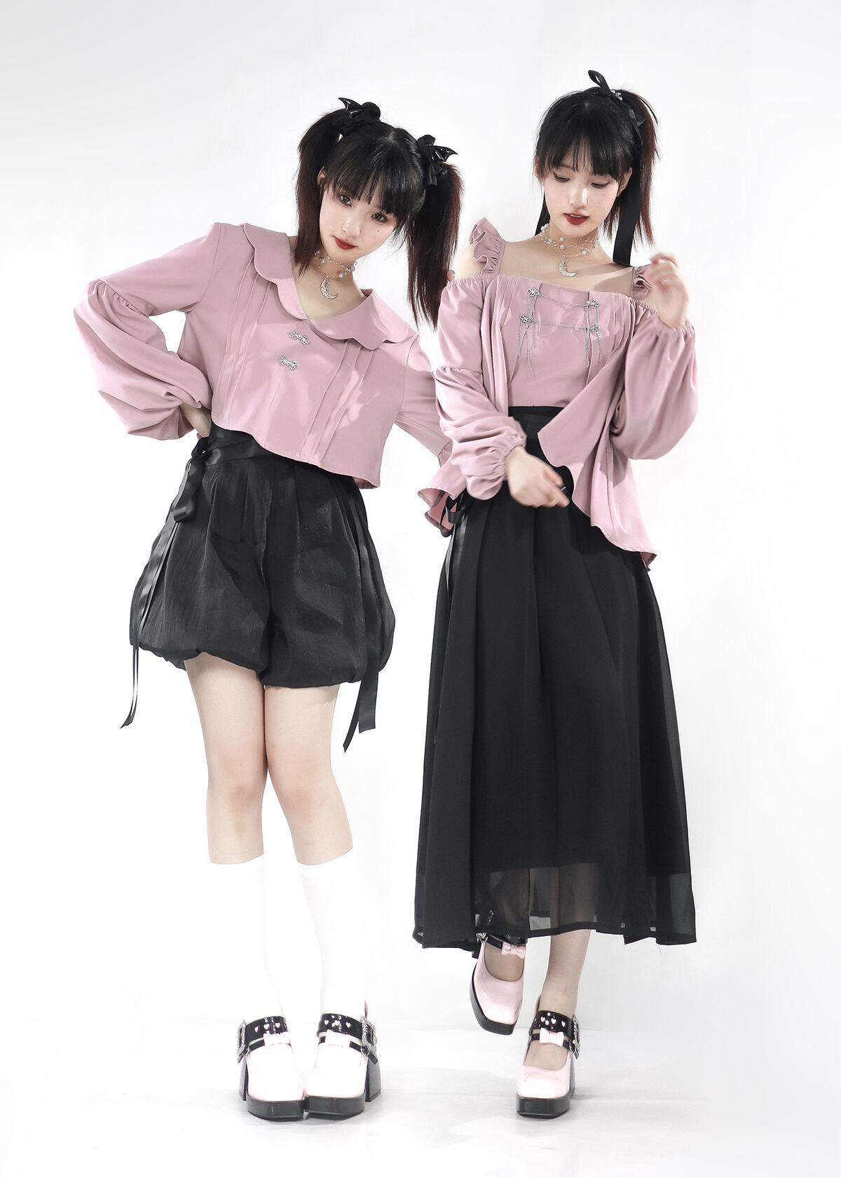 pinksavior [獫絨] 新作チャイナシャツ スカート 合金 バックル デザイン 秋 スーツ ピンク オータム 秋物 PSTB38531737667