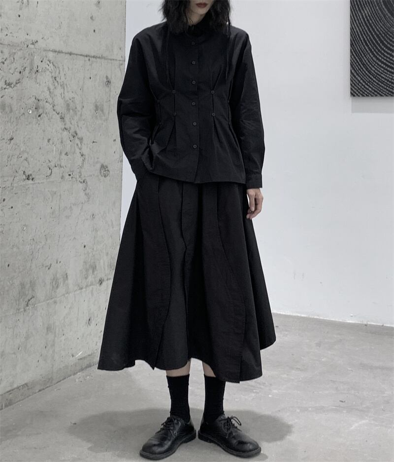 ダークスカートの女性の不規則なニッチなデザインのオールマッチブラックAラインスカート秋 オータム 秋物 BWTB75438569201