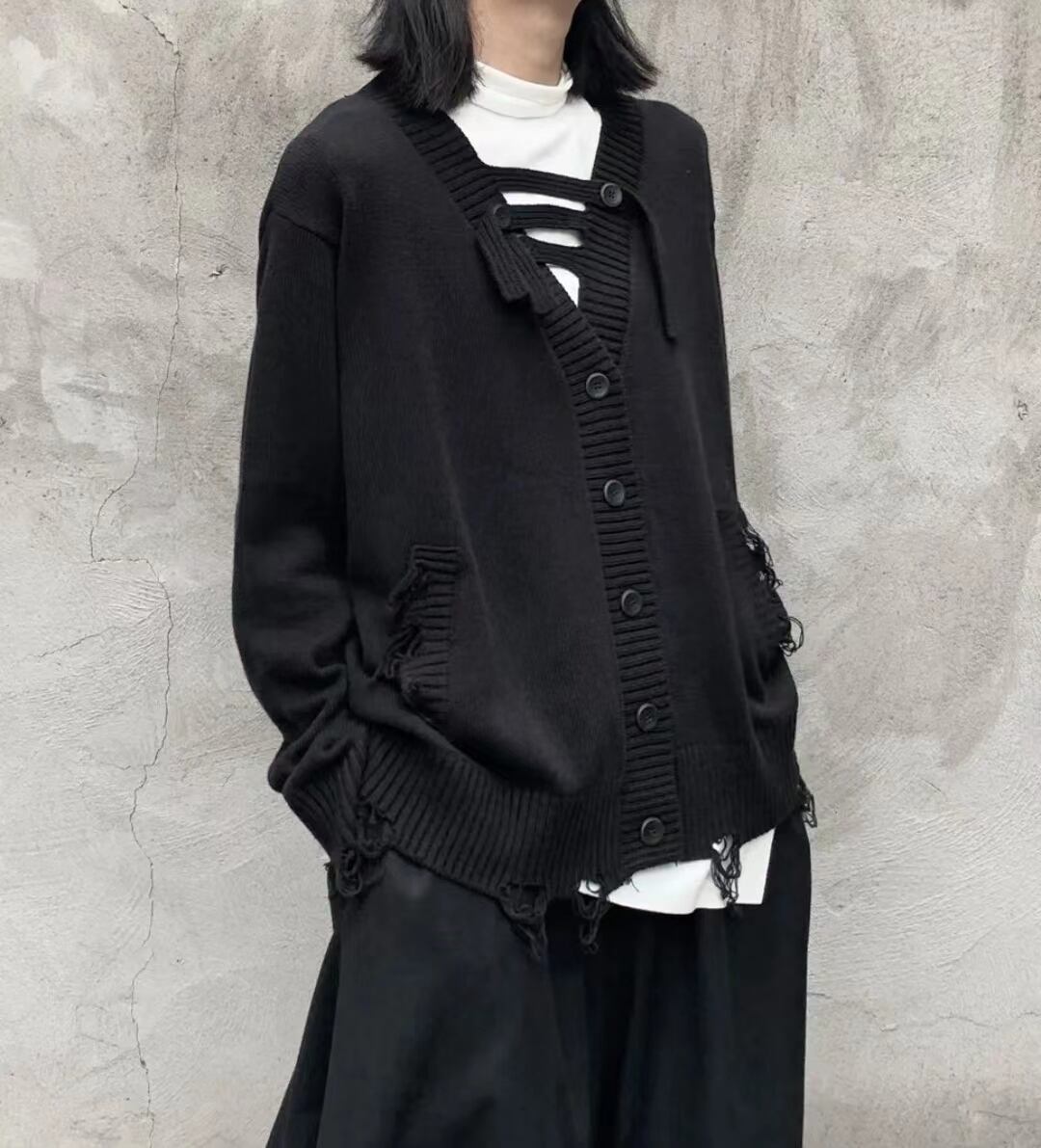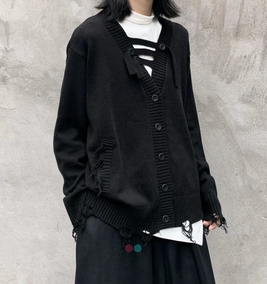 秋の暗いセーターの小さな女性のゆったりとした不規則なセーターのジャケット オータム 秋物 BWTB43520722535