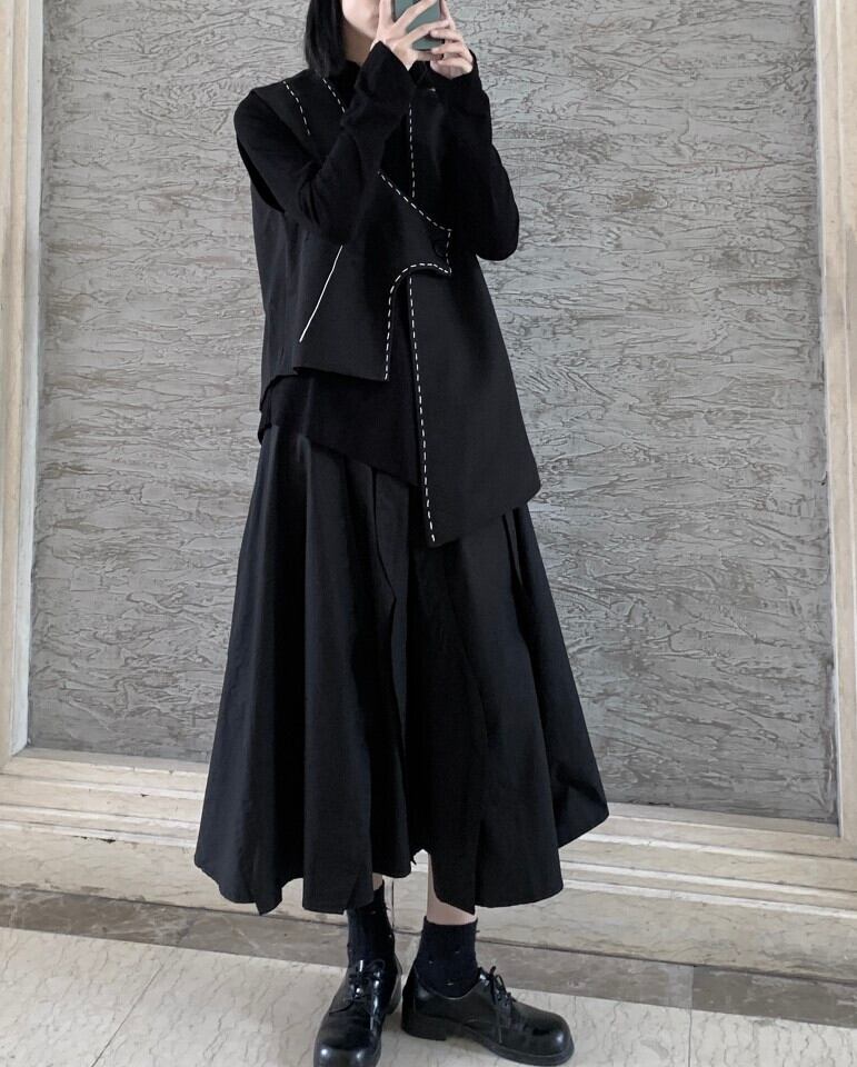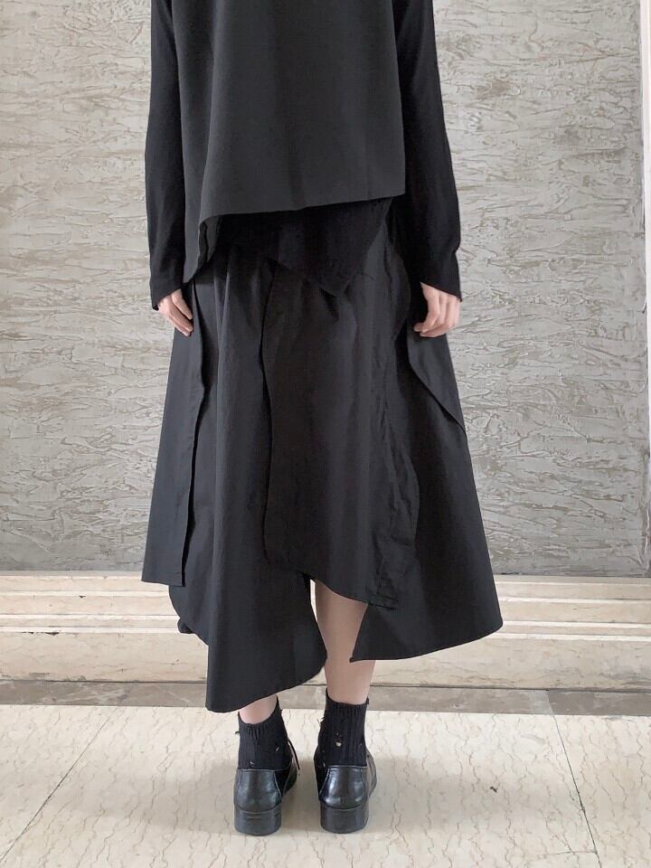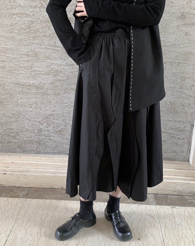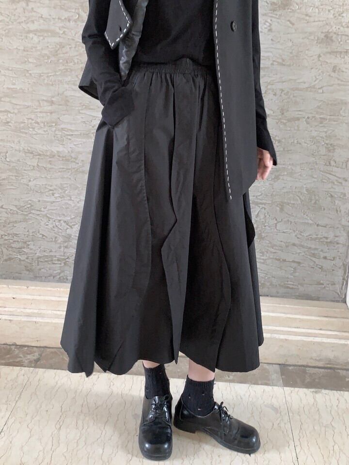 レディース 秋 スカート 小さめ イレギュラーウエスト スリム ブラック Aライン ミッドスカート オータム 秋物 BWTB21139024393
