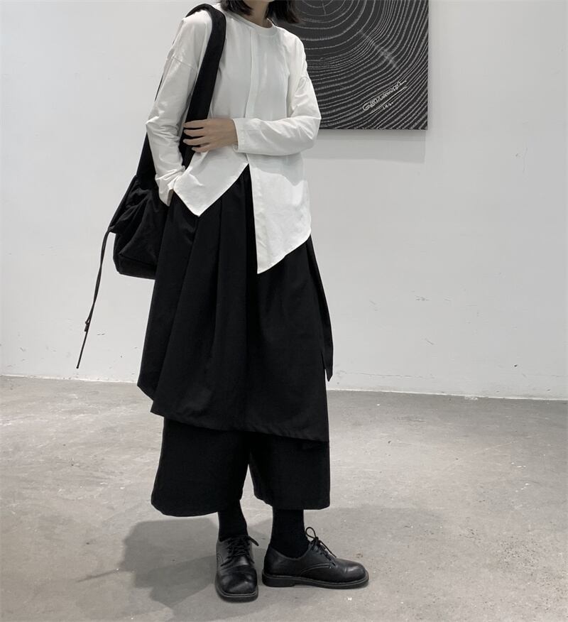 BLANK AND WHITE Diablo Yamamoto Yohji ese カップル カジュアルパンツ レイヤード ナインポイント ワイドパンツ ホワイト レッド BWTB55338028524