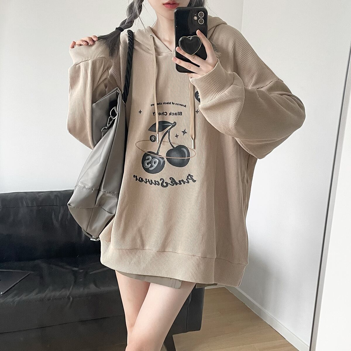 pinksavior 秋冬チェック柄セーター スペシャルタッチ フード付き ダークグレー&カーキチェリーセーター ピンク オータム 秋物 ウィンター 冬物 PSTB4033355144