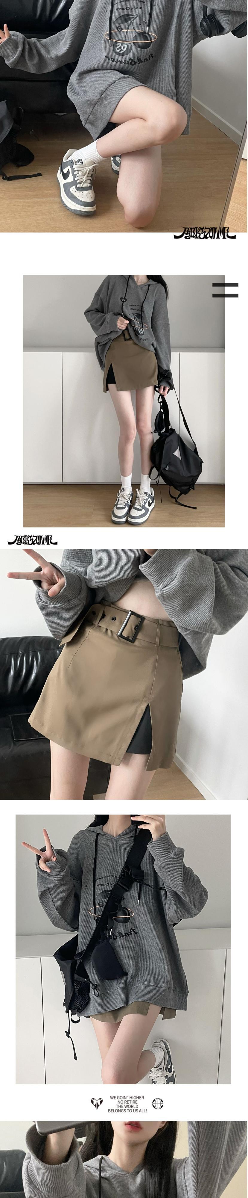 色:ダークグレーのチェックのスウェットシャツ,カーキ色のセーター,カーキ色のスカート