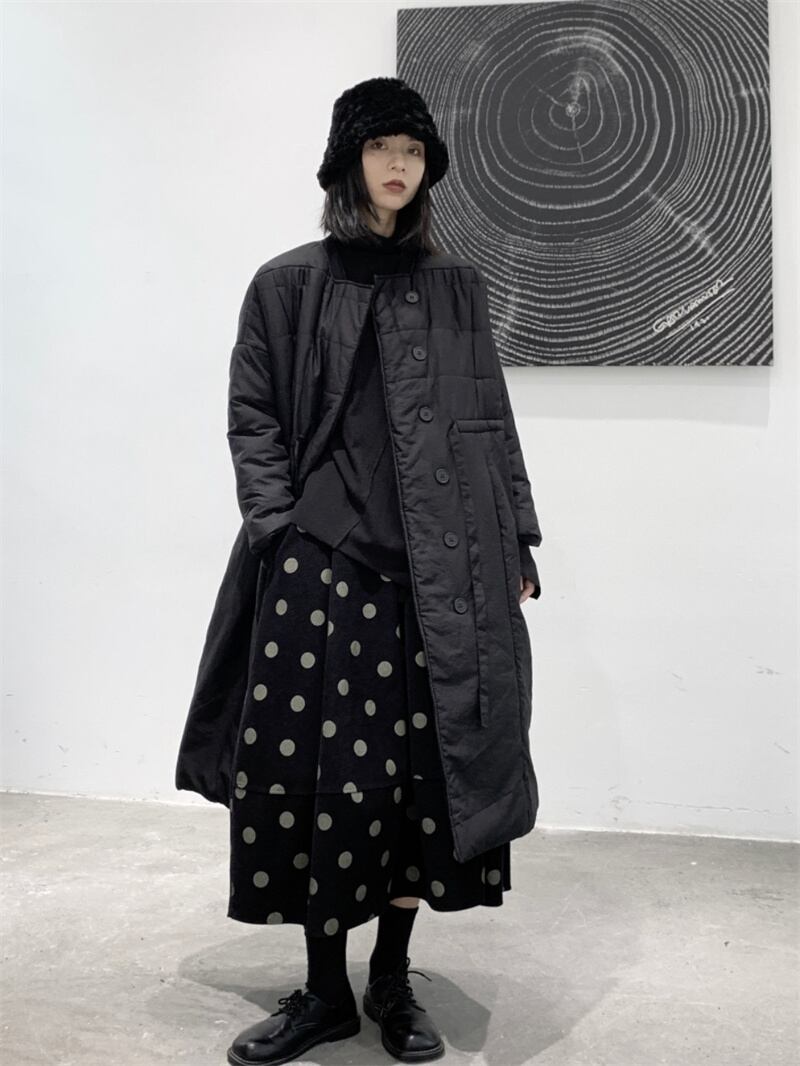 山本耀司ダークウィンドニッチルーズコットンコートレディース冬厚めミドル丈オーバーザニーコットンコート黒コート ブラック ウィンター 冬物 BWTB66553012446