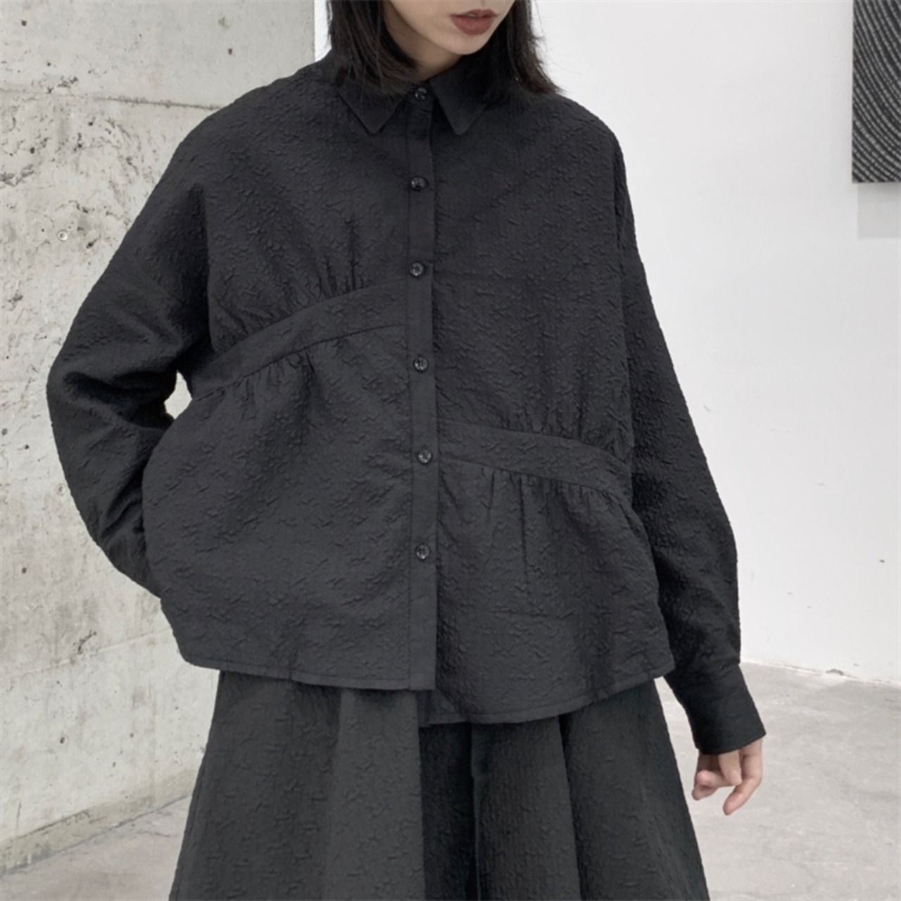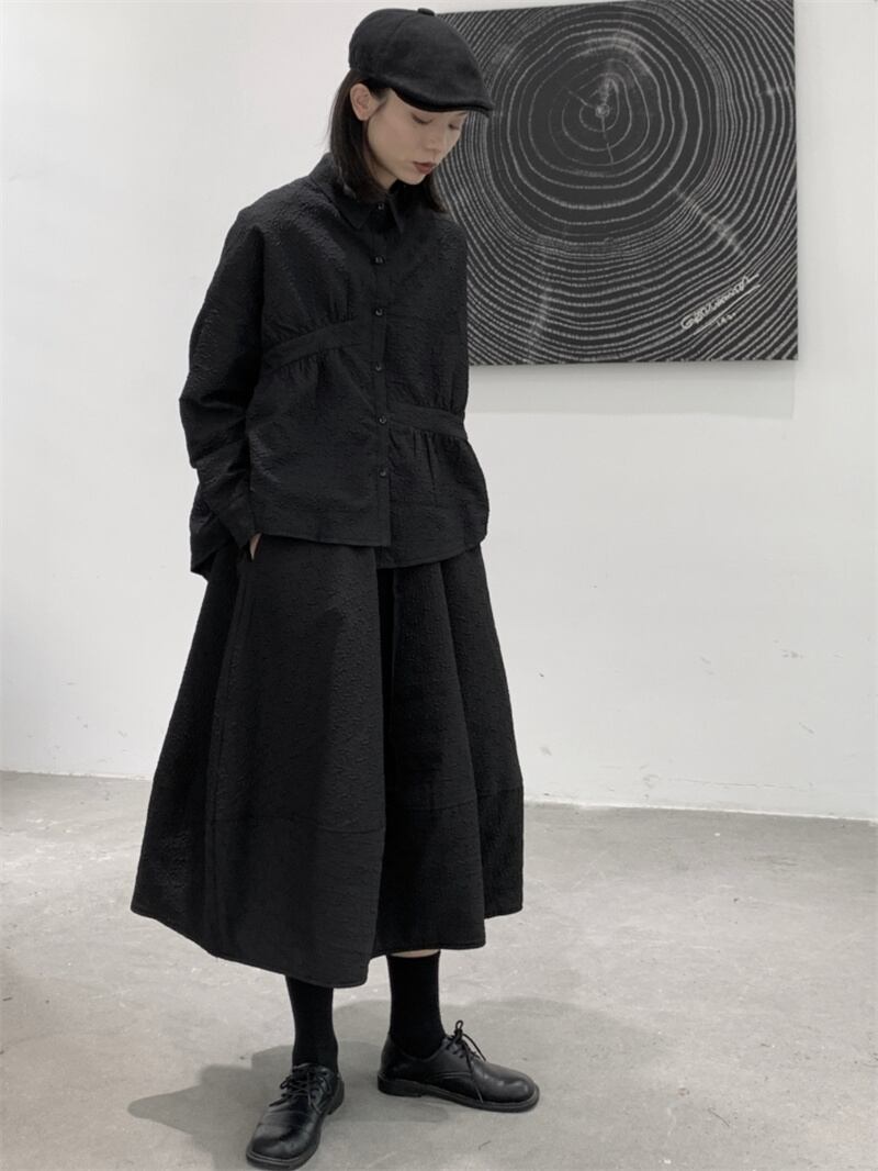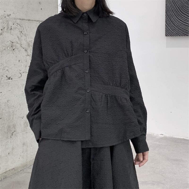 2022 秋冬プリーツデザインダーク山本ニッチ不規則なキルティング肥厚長袖シャツジャケットレディーストップ ロング オータム 秋物 ウィンター 冬物 BWTB55886846632