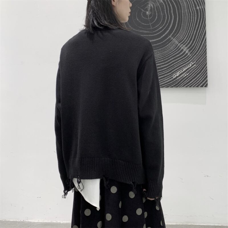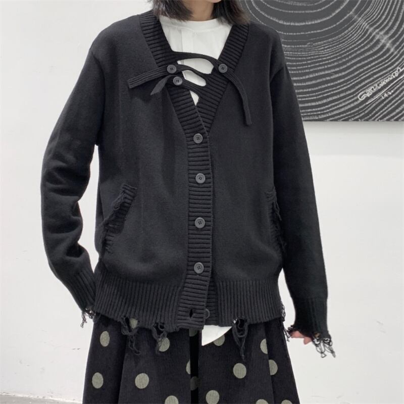 ダークニッチ オリジナルデザイン トルンエッジ ほつれセーター ルーズカーディガン セーター シングルブレストジャケット BWTB77994269427