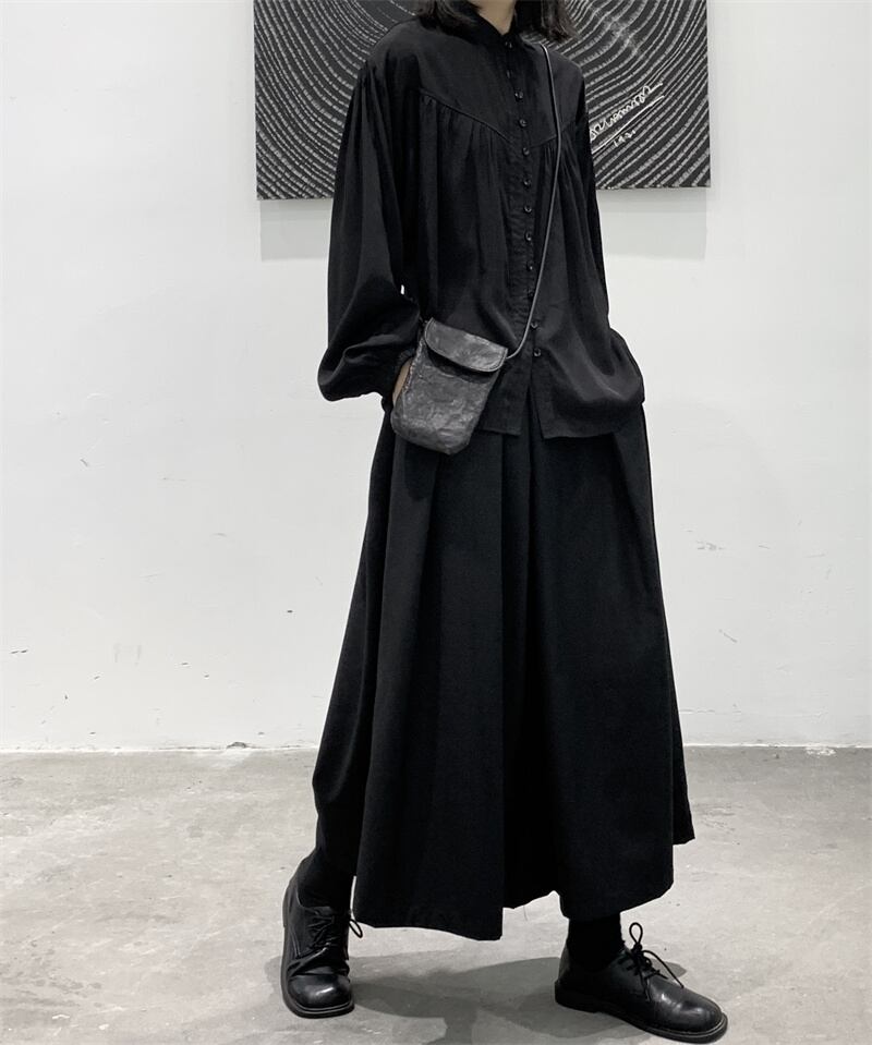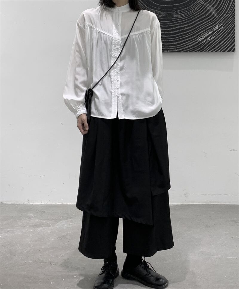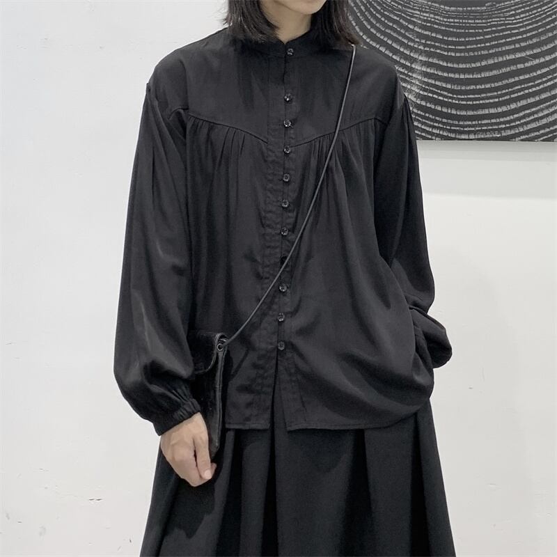 ダークニッチプリーツフレンチデザイン長袖シャツ女性の 2022 秋の新しいルーズオールマッチ無地シャツ ロング オータム 秋物 ソリッドカラー BWTB598882208