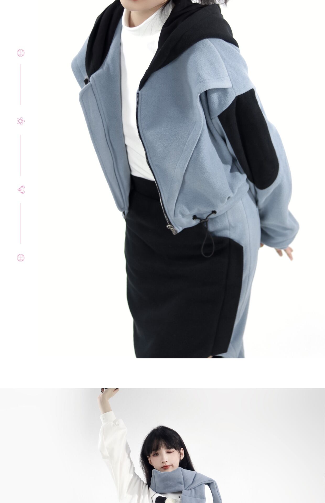 色:フリースカラーブロックショートジャケット,フリースカラーブロックロングコート,モザイクスウェットシャツ,カラーブロックロングスカート,カラーブロックブラックパンツ,スモールタートルネックベルベットインナー