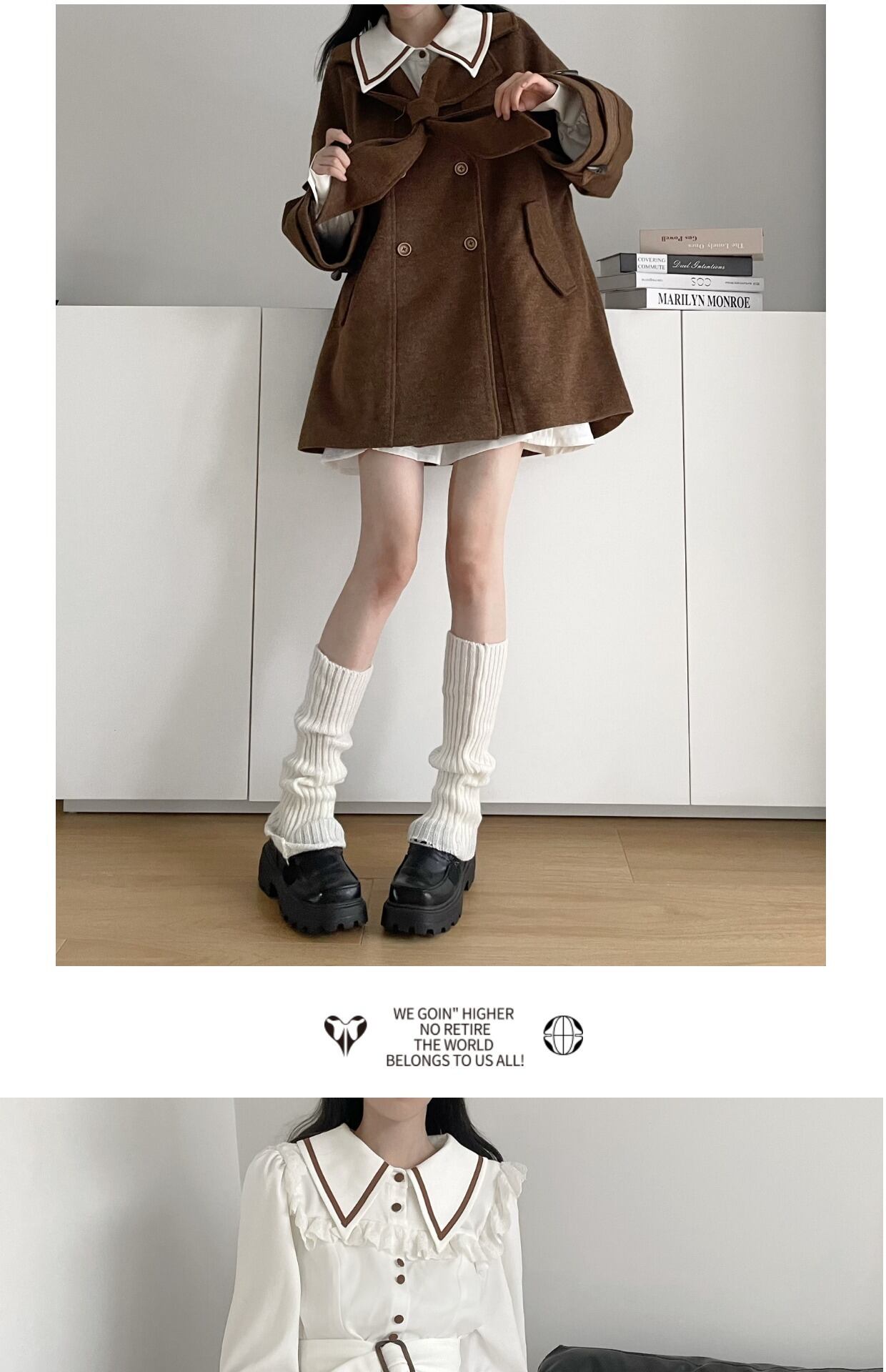 色:オートミールウールロングコート,シャツワンピース,オートミールウールショートコート,長袖,ロングスカート