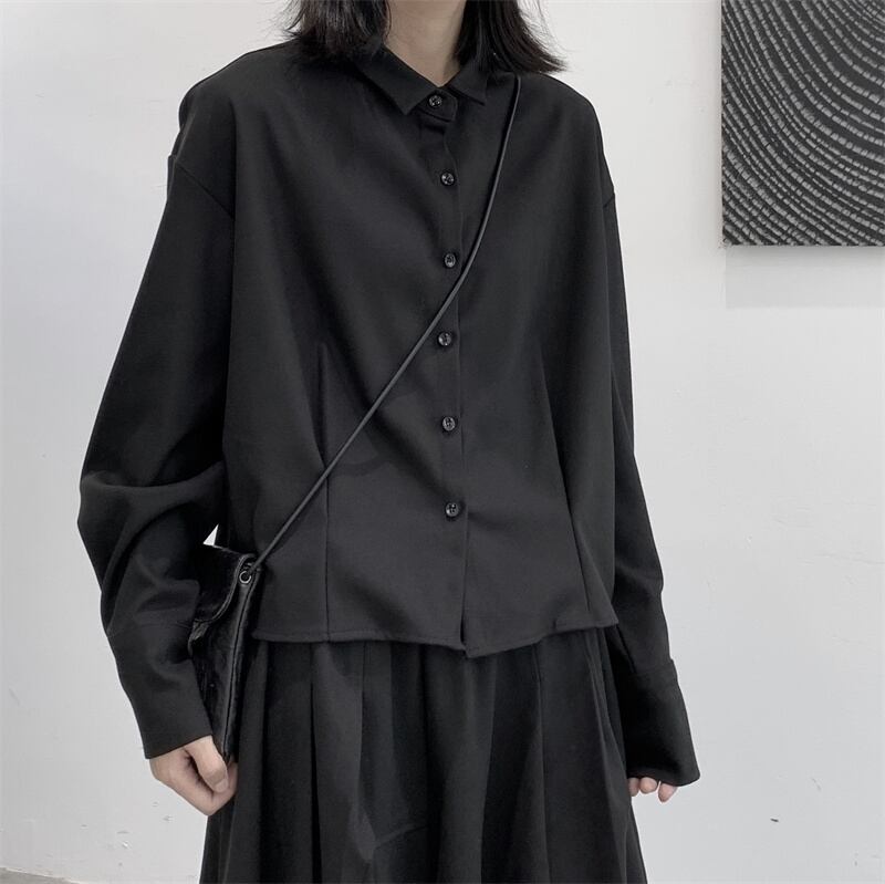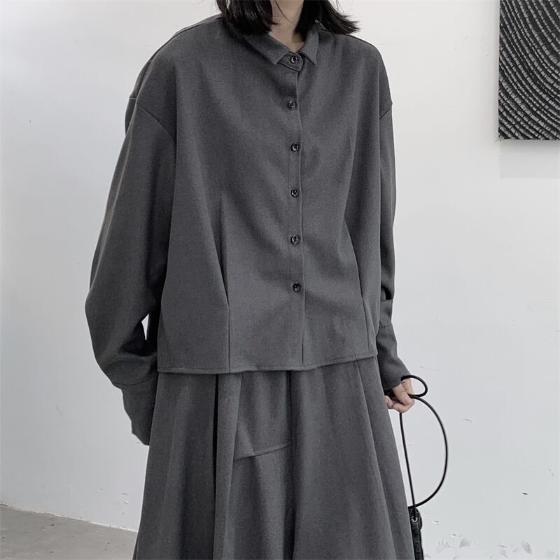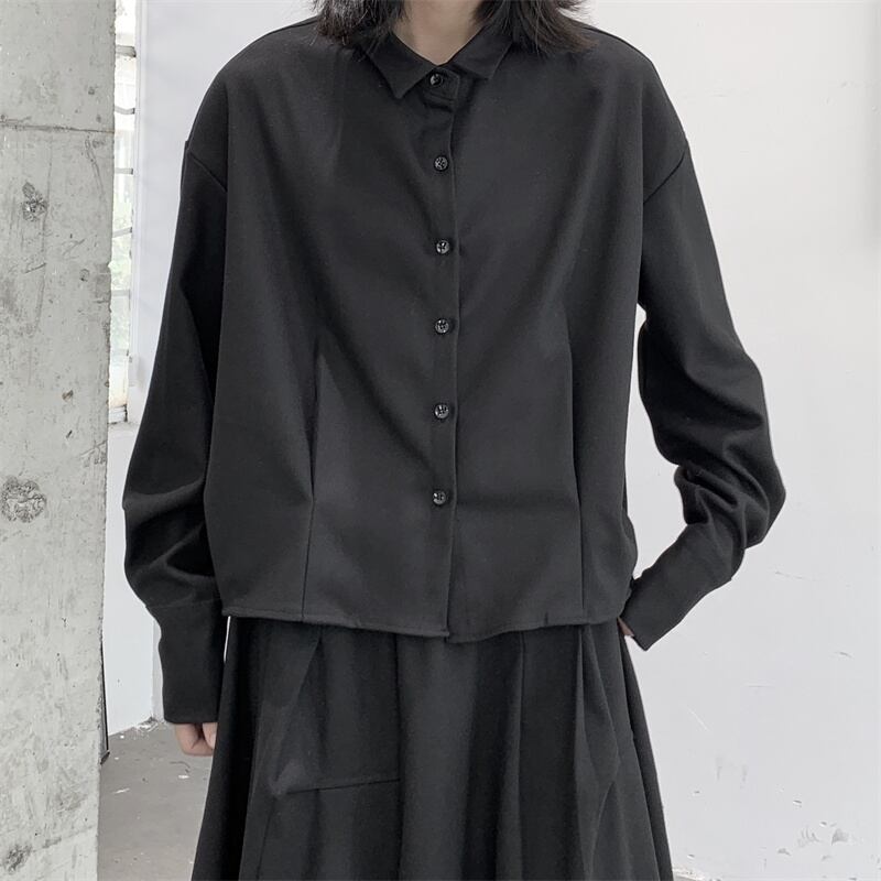 BLANKANDWHITE 秋と冬の新しいダークブラック肥厚プリーツデザインニッチショートシャツ女性のルーズトップ ホワイト オータム 秋物 ウィンター 冬物 BWTB56566683548