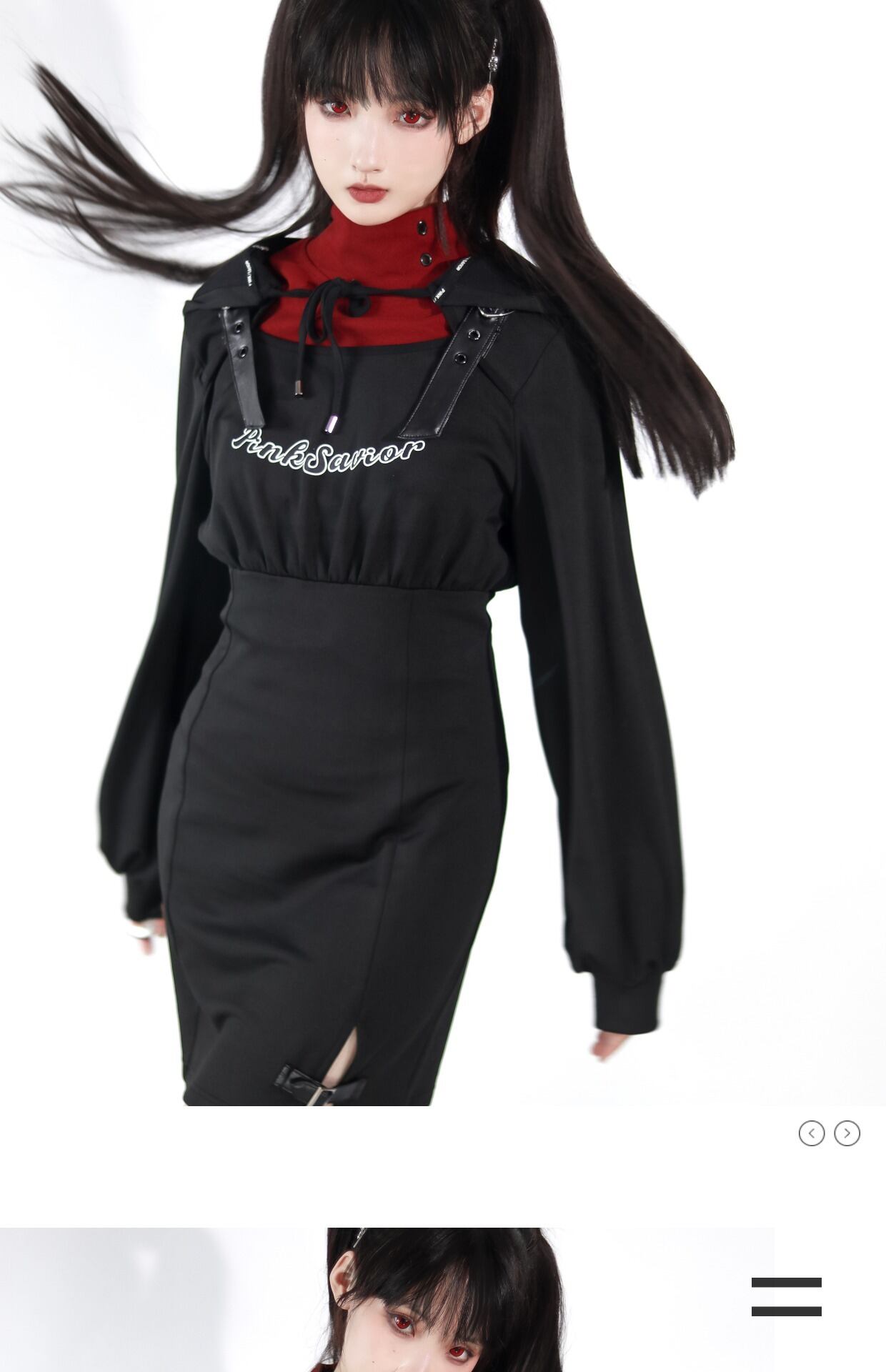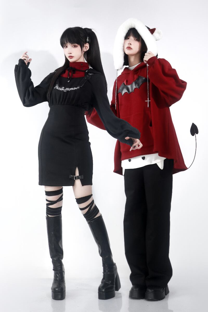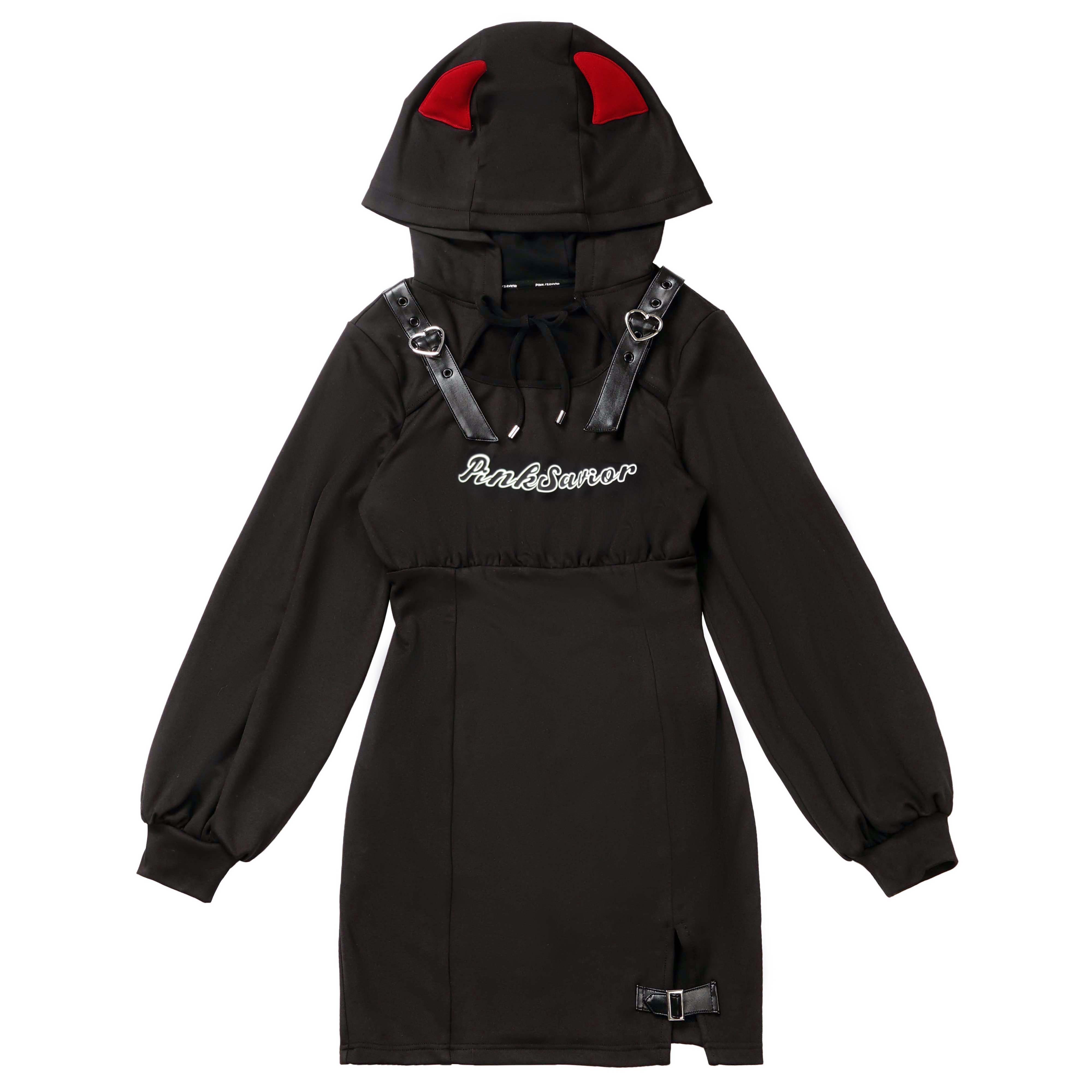 pinksavior 【魔女の食事】秋冬ドレス 悪魔の角 赤と黒 カップルの親友セット ピンク レッド ブラック オータム 秋物 ウィンター 冬物 PSTB18460747109