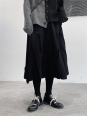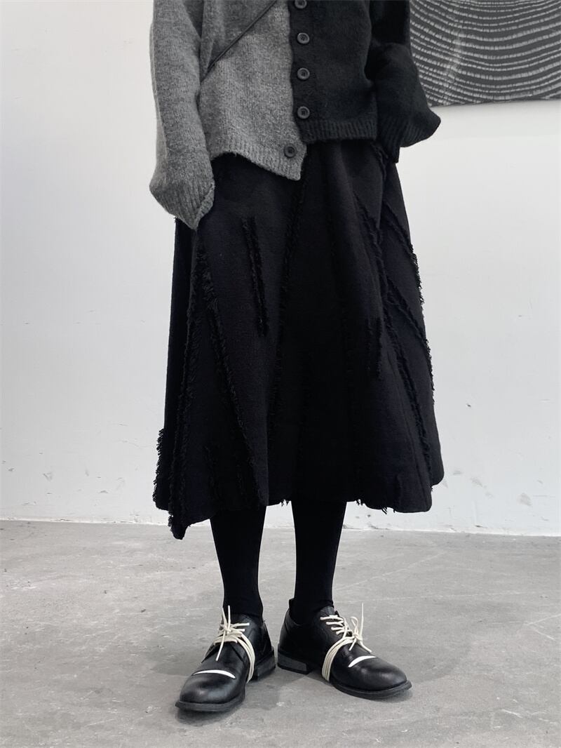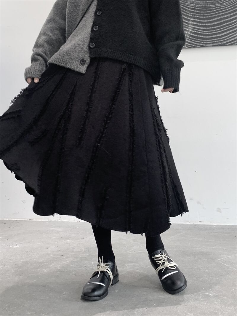 ディアブロヤマモトのニッチ生エッジデザインウールスカートイレギュラーヘムAラインスカート秋冬厚手スカート オータム 秋物 ウィンター 冬物 BWTB88344024097