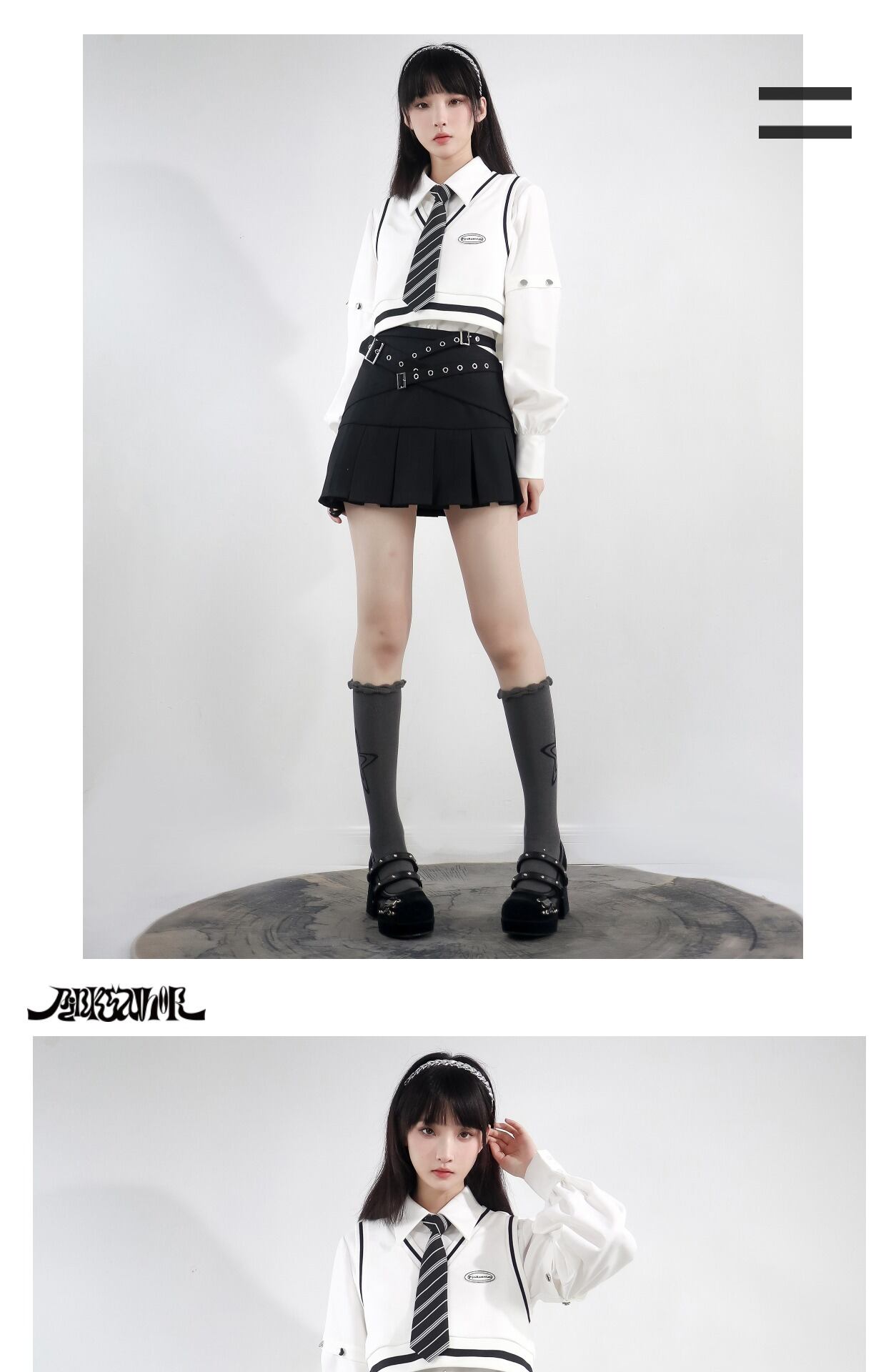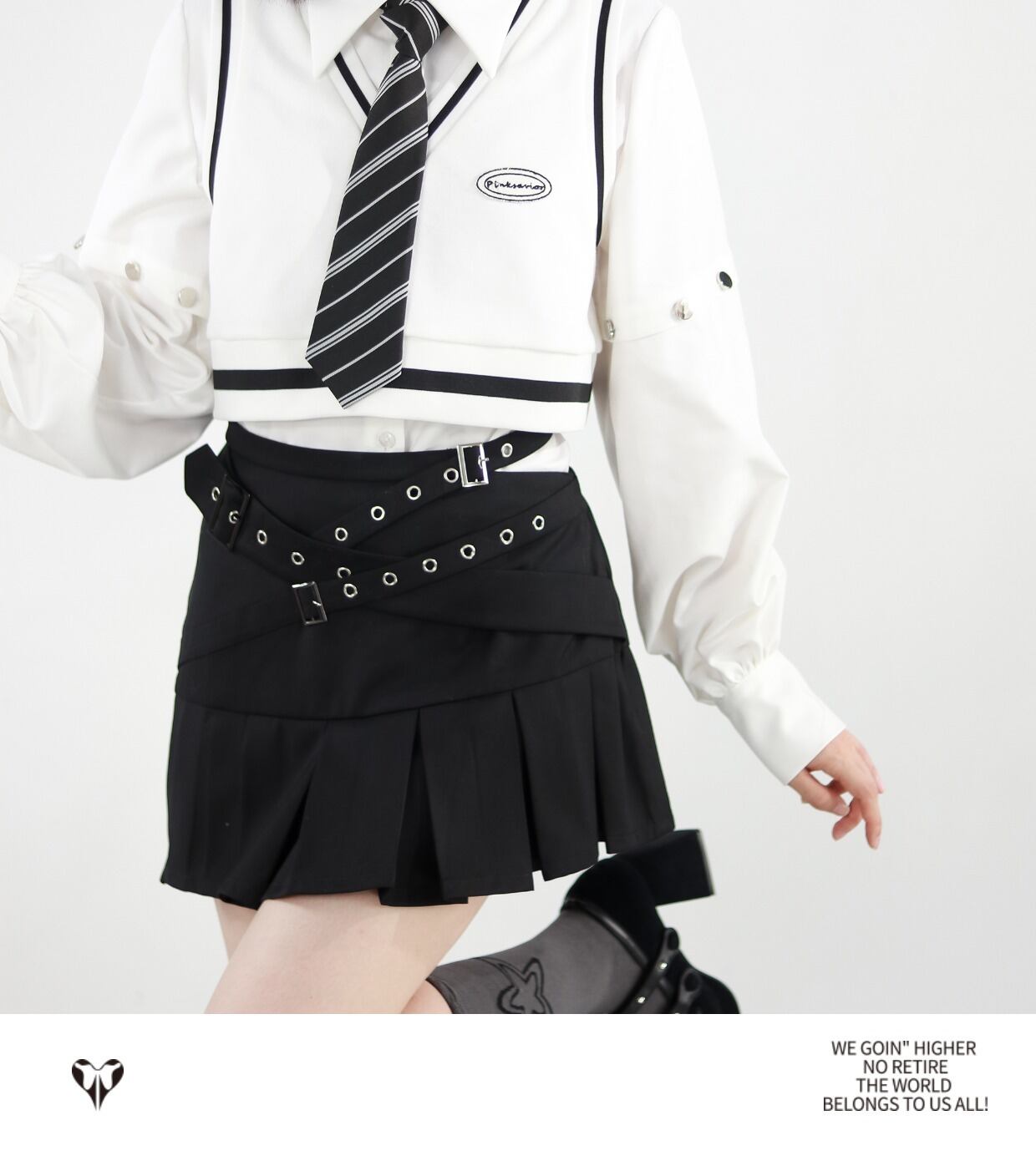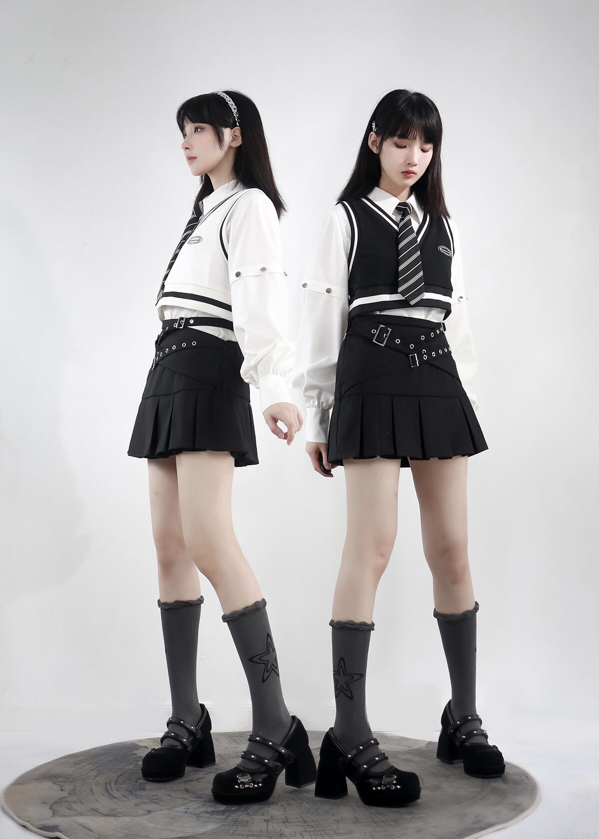 色:白いシャツ黒いベスト,白いシャツ白いベスト,レースアップスカートブラック