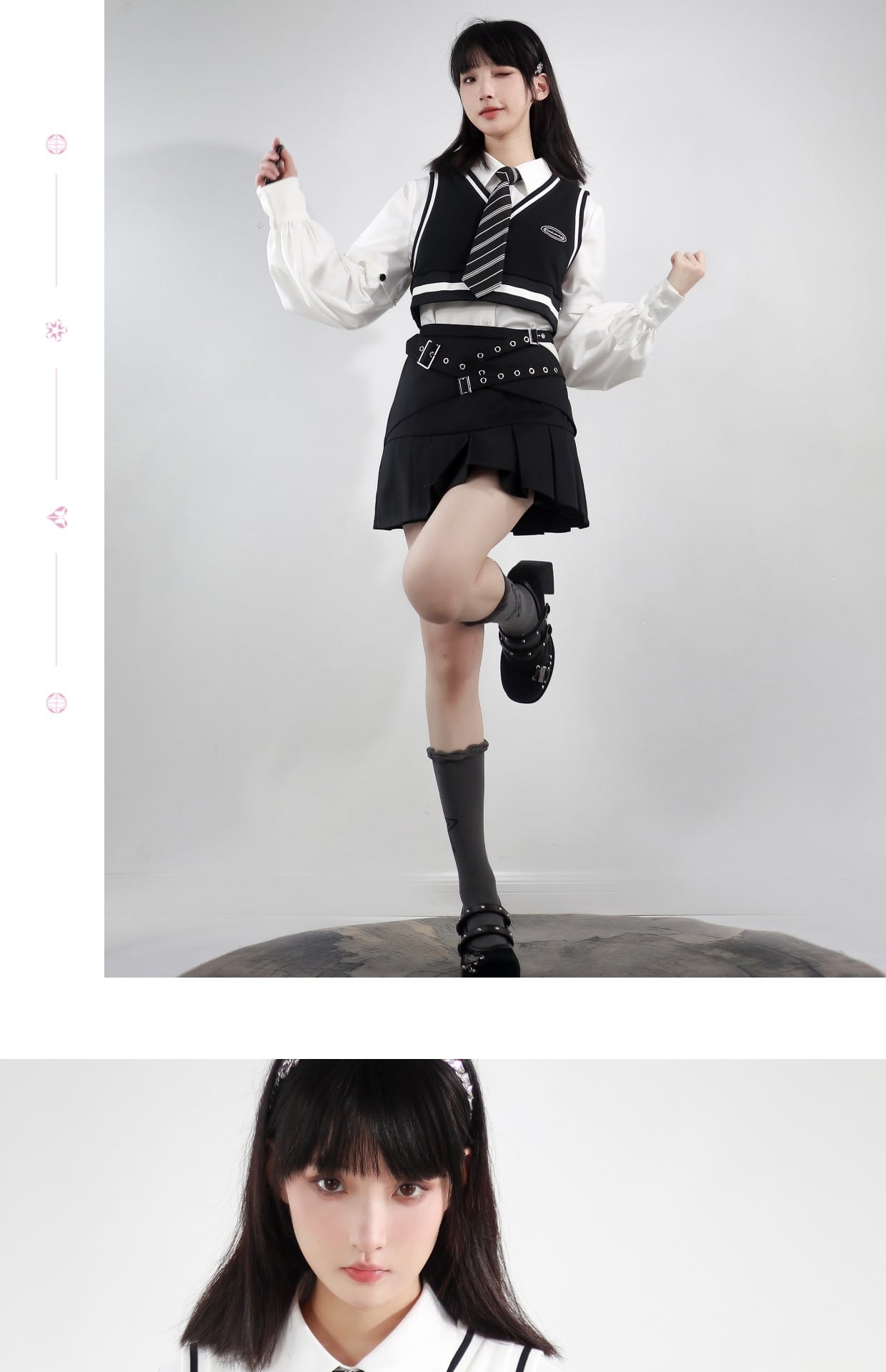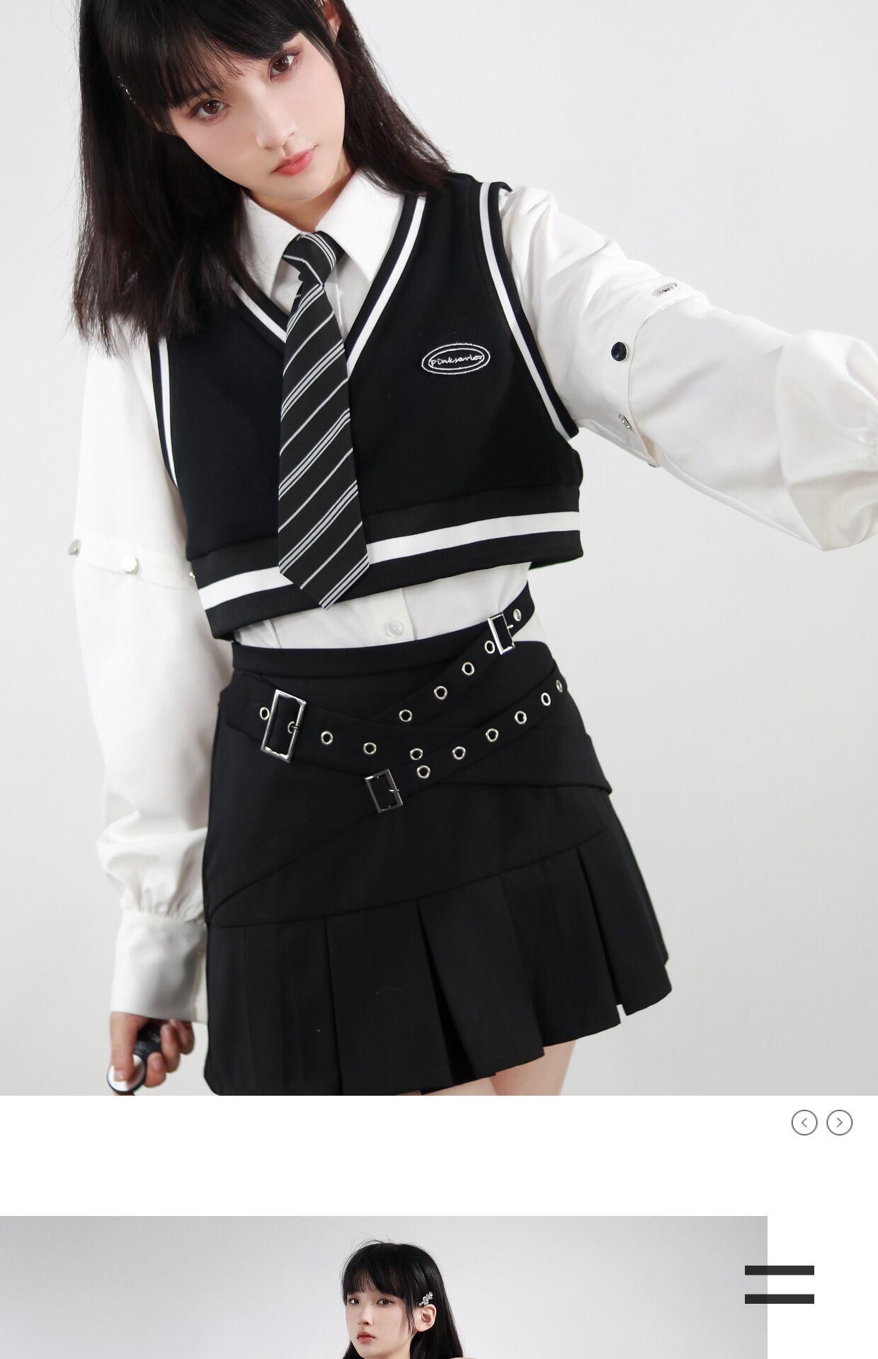 pinksavior【白黒ノーツ】カレッジベストシャツツーピースデザインスリーピーススカート秋冬 ピンク ホワイト ブラック オータム 秋物 ウィンター 冬物 PSTB57162128286