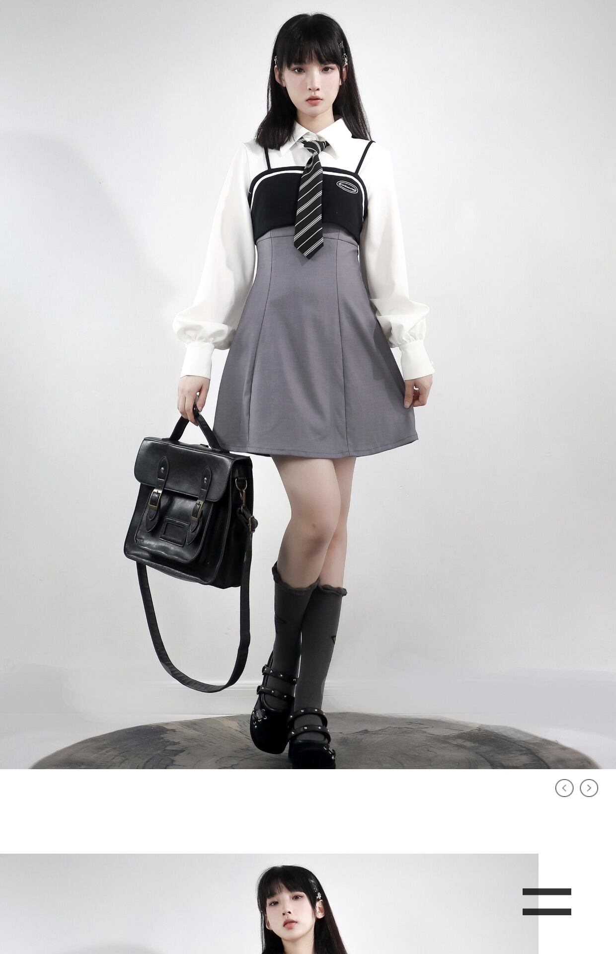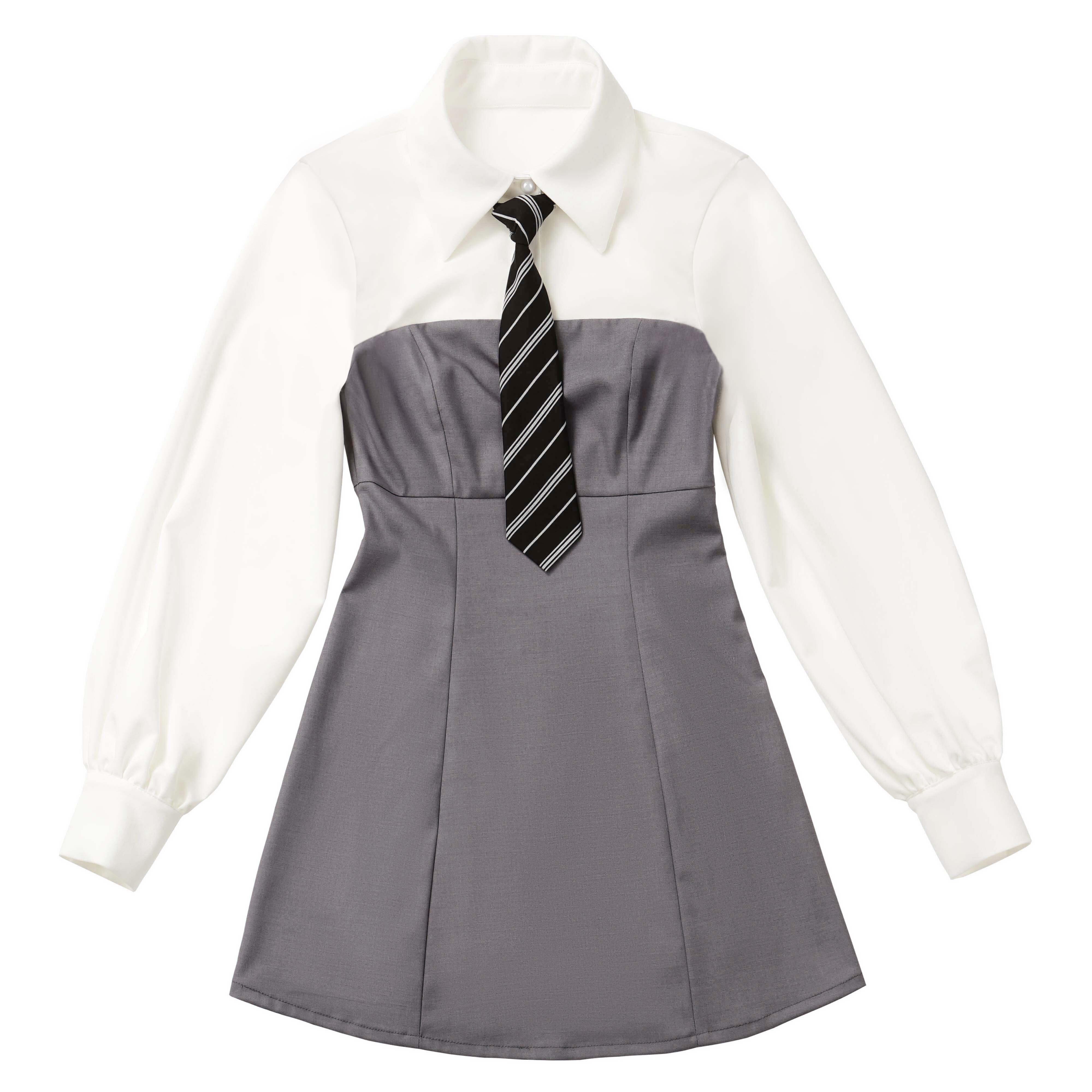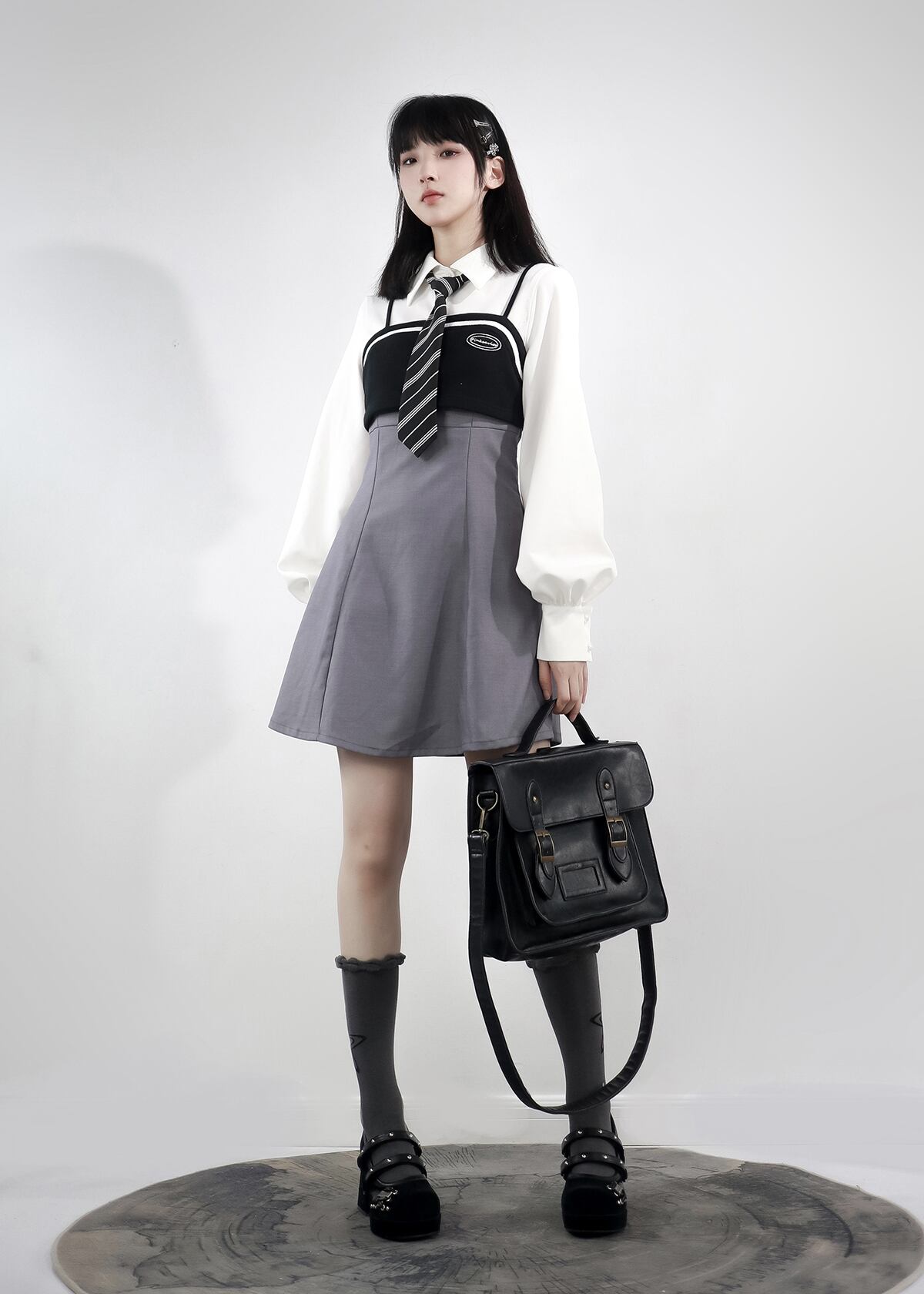 pinksavior カレッジサスペンダー+ステッチシャツ グレー スーツ スカート シニア感 デザインスーツ ピンク PSTB82442170968