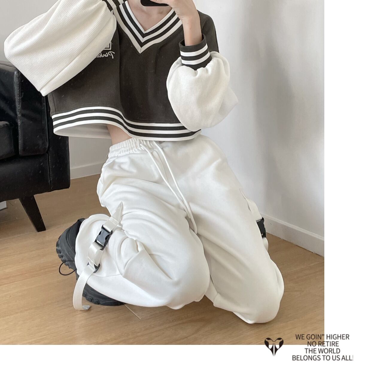 pinksavior 秋冬 ホワイト ゆったり ロングレッグ カジュアルパンツ & チェッカーボードステッチ ホワイト スリム キュロット ピンク オータム 秋物 ウィンター 冬物 PSTB10820532051