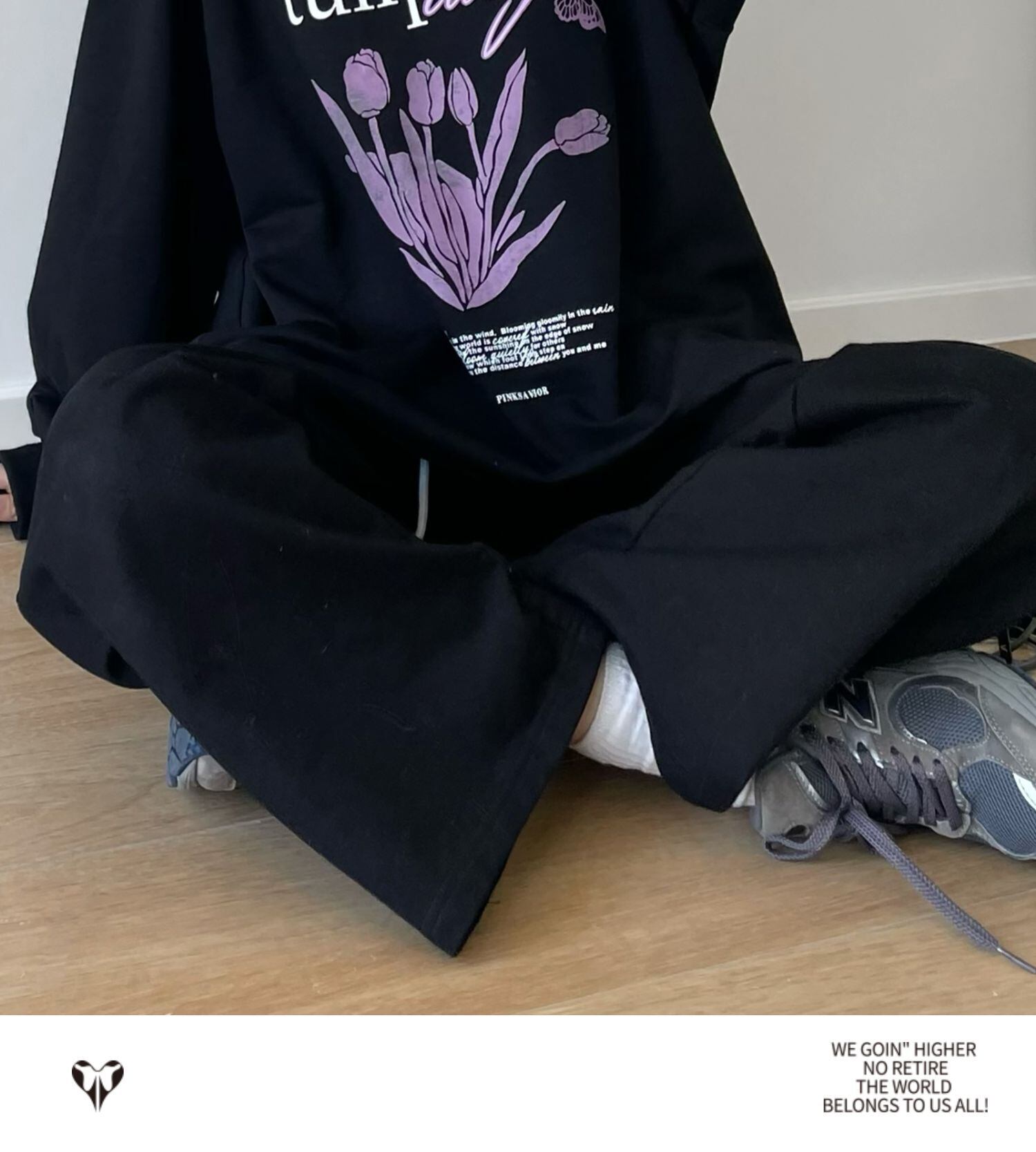 pinksavior 白黒チューリップ映画の内側と外側 快適でカジュアルなダブルネックのミドル丈セーター ピンク ホワイト ブラック PSTB94397551458