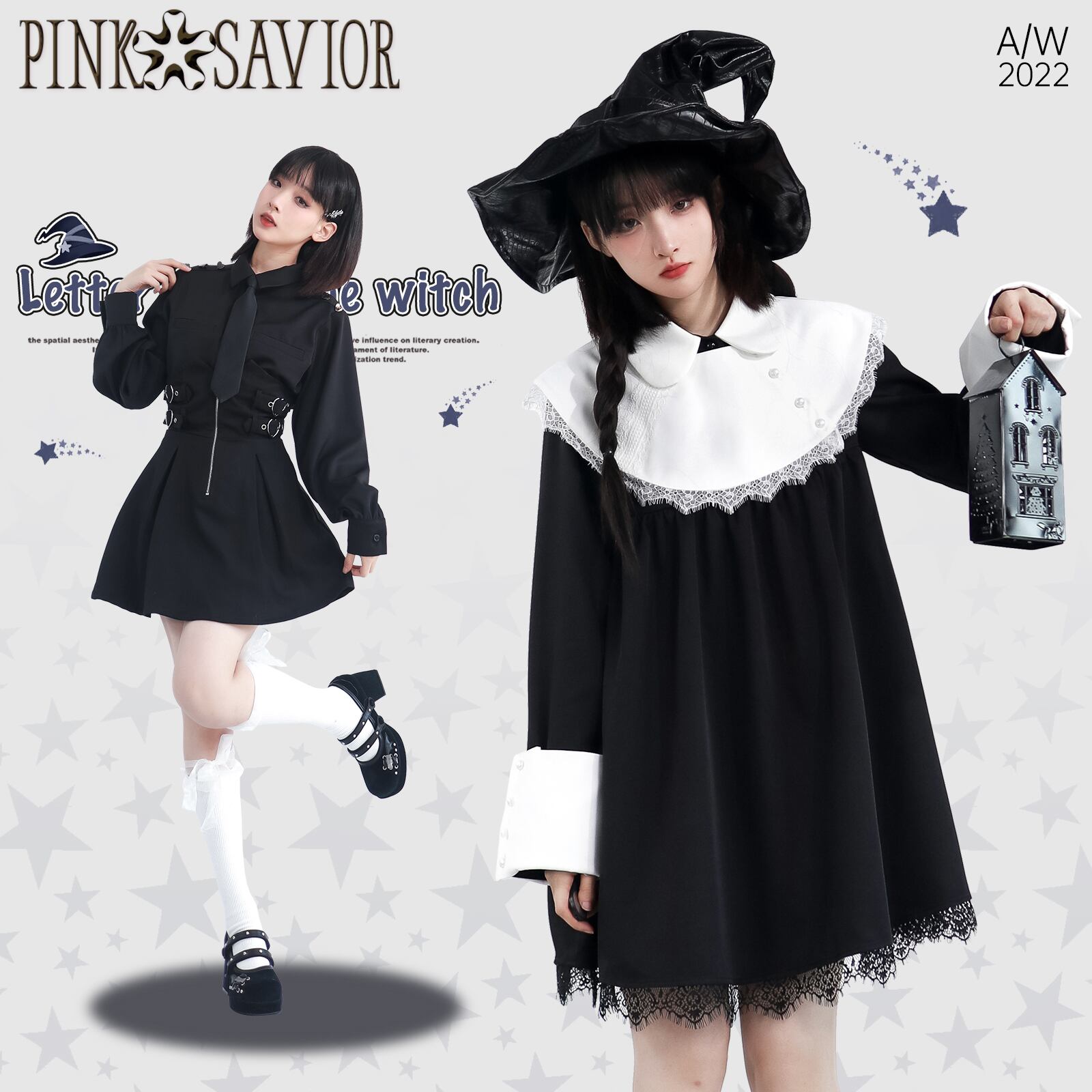 pinksavior [ウィッチフラ] 秋冬黒ドレス女性レースパーティー気質スリムカジュアルスタイル ピンク ブラック オータム 秋物 ウィンター 冬物 PSTB63063030914