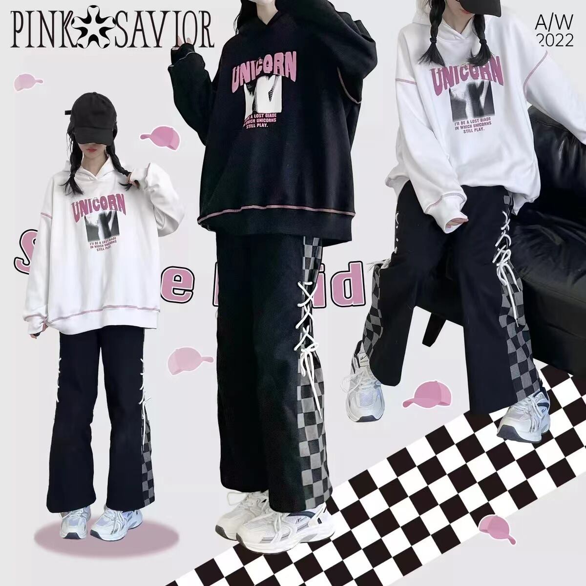 pinksavior ランジェリーデニムストラップステッチ秋と冬のストレートレッグの組み合わせのズボン ピンク オータム 秋物 ウィンター 冬物 PSTB97299500396
