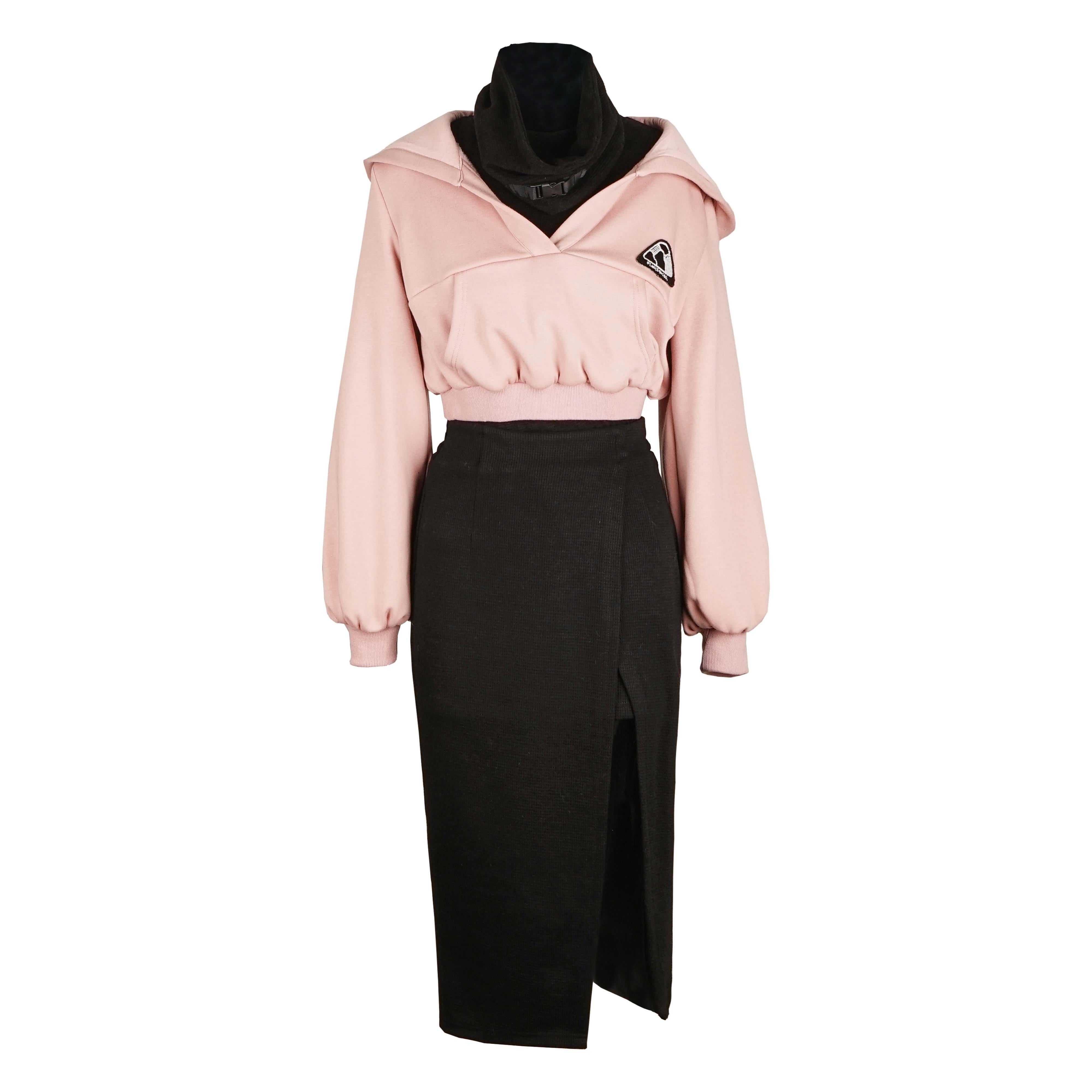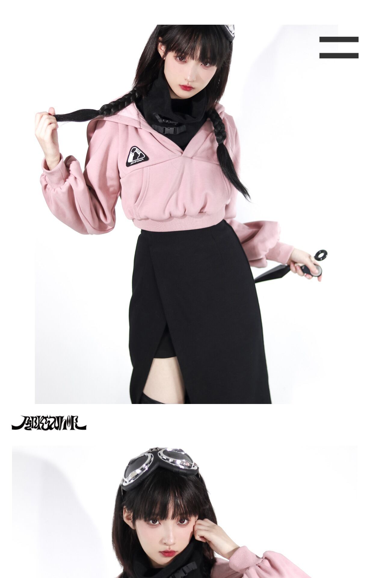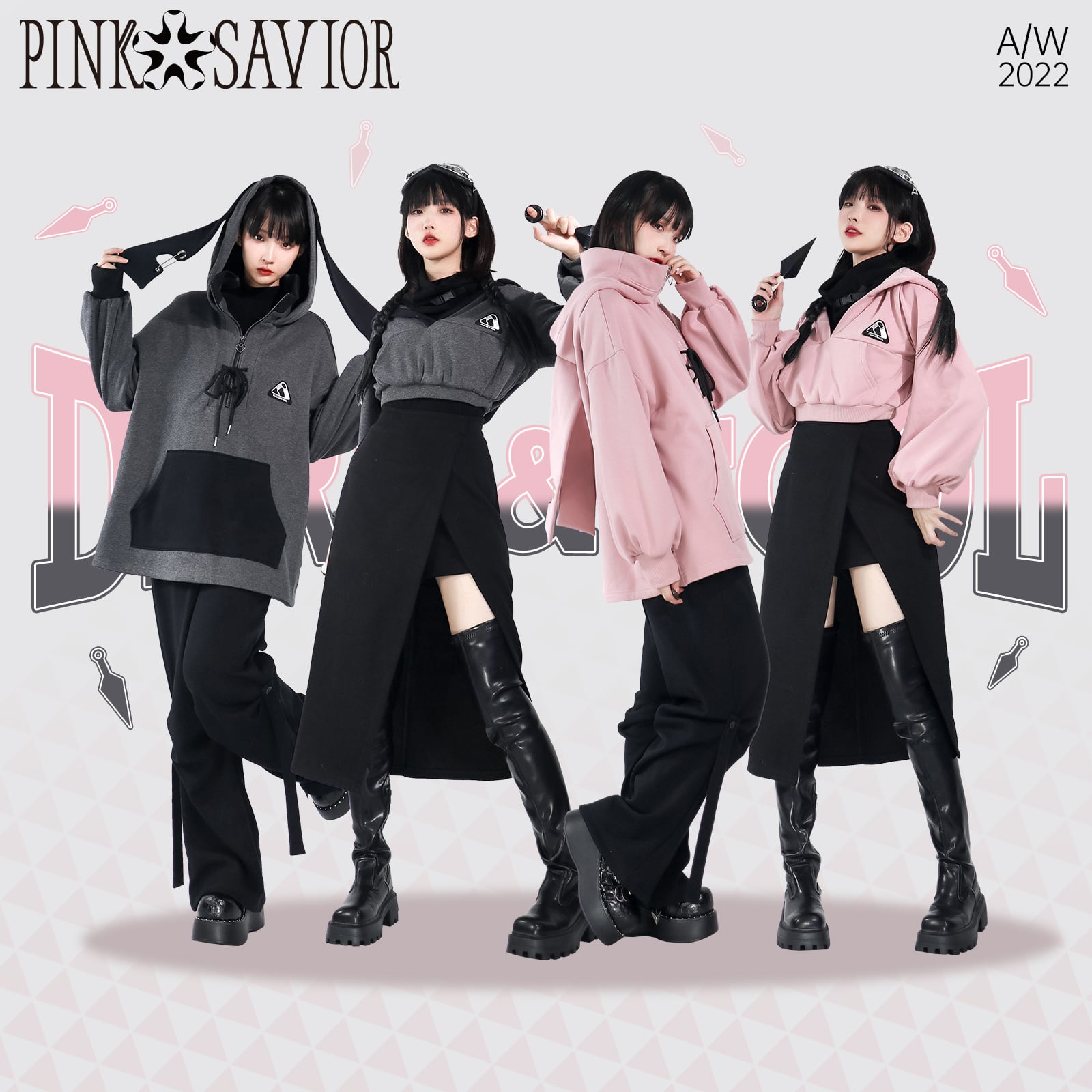pinksavior [パラレルユニバース] ピンクと黒の機能性フード付きセーターマスク風防スカートデザイン集 ブラック PSTB20278254460